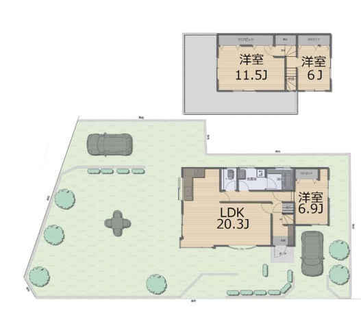 - ※完成予想図はいずれも外構、植栽、外観等実際のものとは多少異なることがあります。