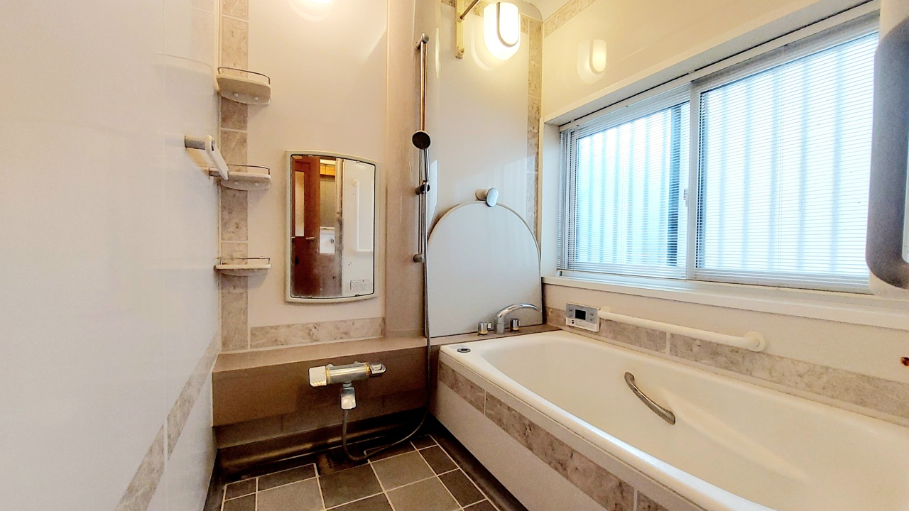 落ち着いた色味の浴室で1日の疲れをゆっくりと癒してください。