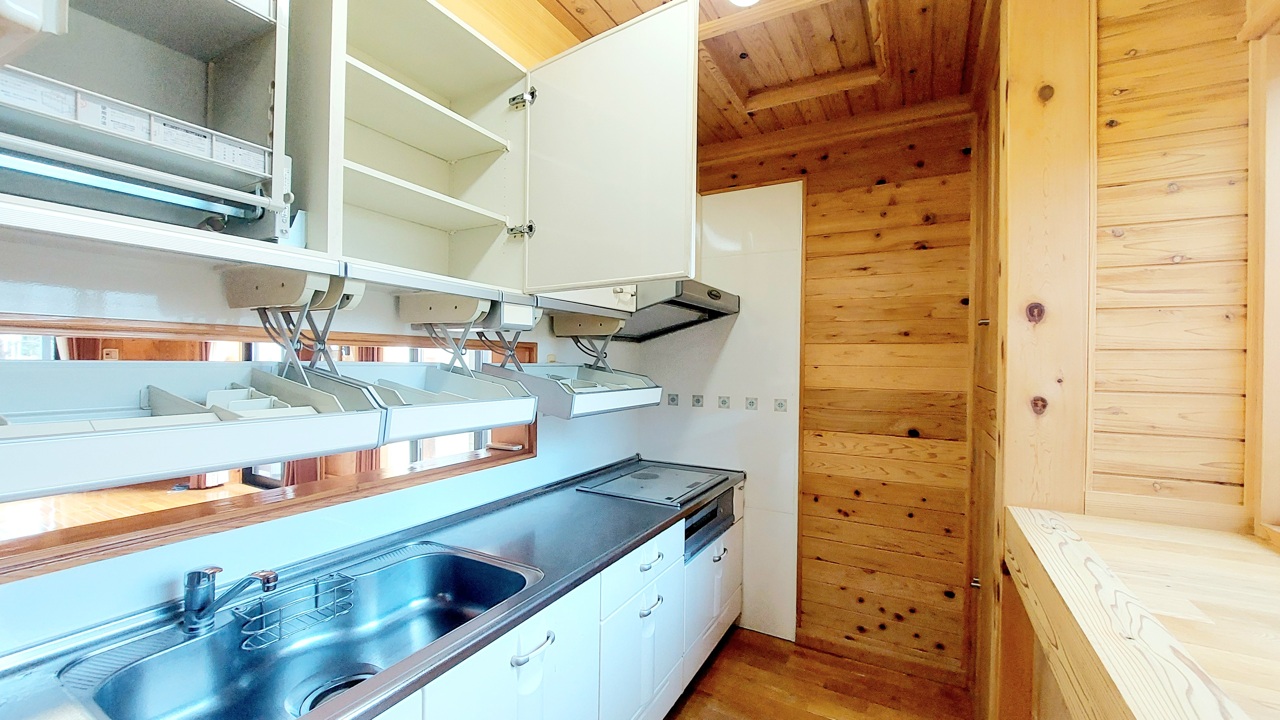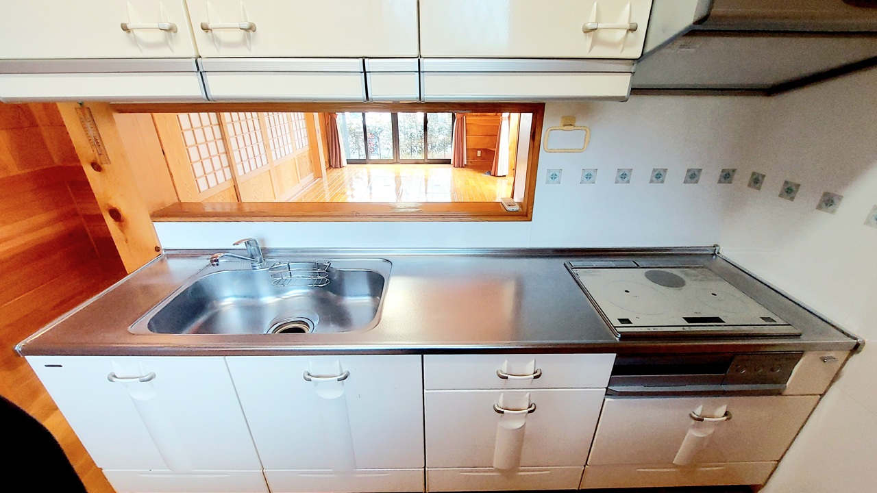 リビングにいる家族の顔が見渡せるカウンターキッチン。お料理もより一層おいしく、楽しく。食器棚を背面に設置しても十分な広さを確保しています。