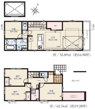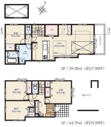 | 間取 | 2SLDK~2SLDK (LDK20.0帖、洋室6.0帖、洋室4.5帖、S5.3帖、S5.3帖) | ||