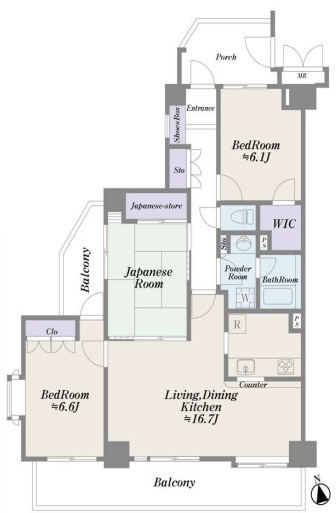 | 間取 | 3LDK (LDK16.7帖、和室6.0帖、洋室6.6帖、洋室6.1帖) | ||