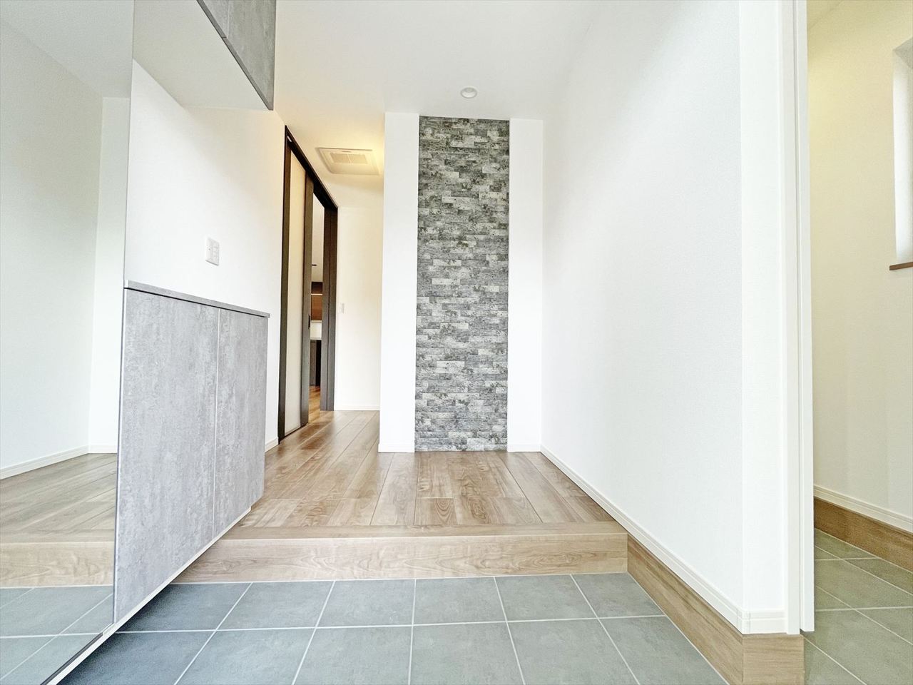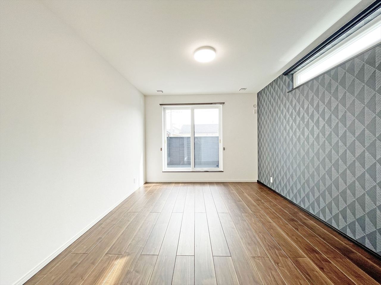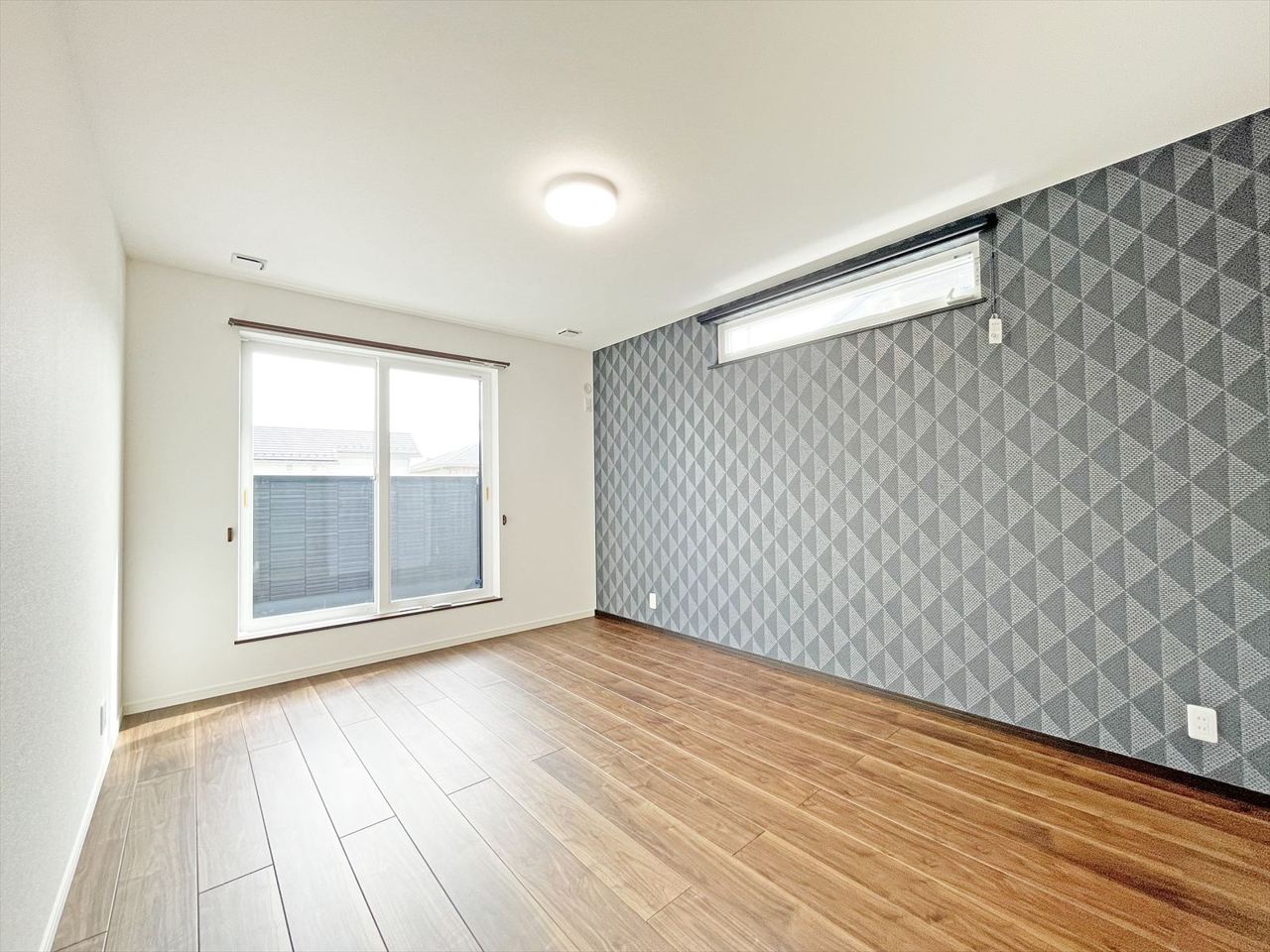 ベースカラーと異なった配色の壁紙を使用。ちょっとお部屋の雰囲気が変わります。