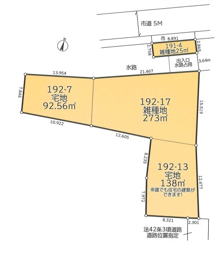 | 接道 | 北側5M公道に8.8M接道 南側4M私道に2.3M接道 |
