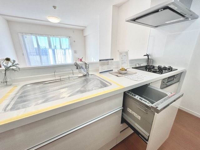 時短に活躍する食器洗浄機や一杯の水も楽しめる浄水器があるシステムキッチン。