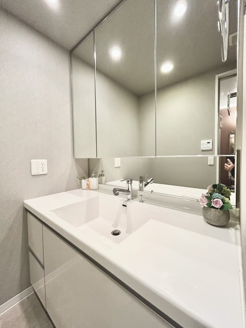 ゆとりの洗面スペースで朝の身支度もスムーズに行えます。