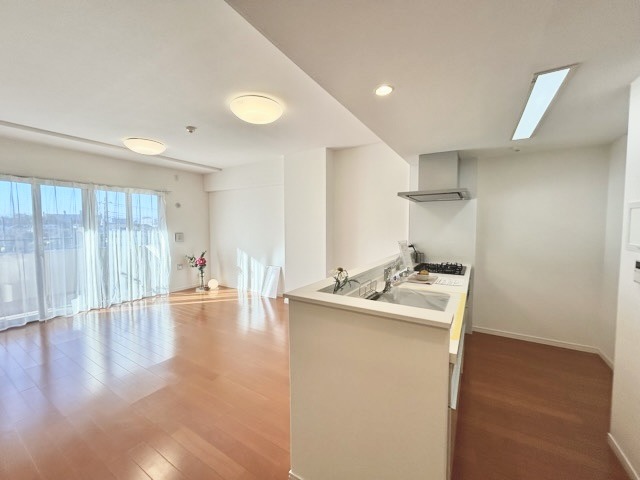 大きな開口部から明るい光が差し込む、日中の室内の明るさがこの部屋の魅力です。