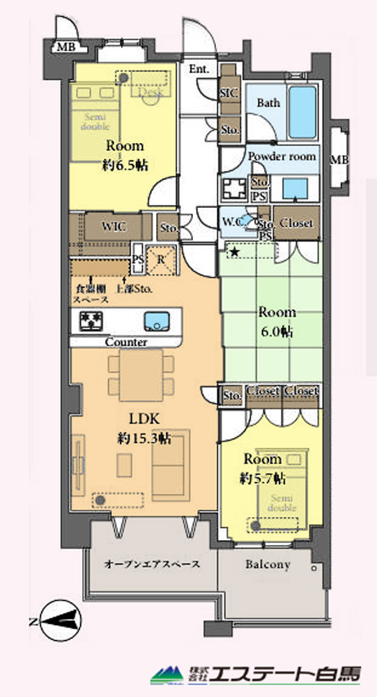 | バルコニー面積 | 5.48m² 西向き (オープンエアスペース面積6.48m2有り) | ||