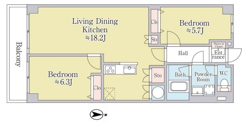 | 間取 | 1LDK (LDK18.2帖、洋室6.3帖、洋室5.7帖) | ||