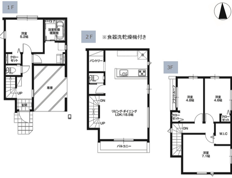 | 間取 | 4LDK + ウォークインクローゼット有 (LDK18.5帖、洋室5.2帖、洋室7.1帖、洋室4.8帖、洋室4.6帖) | ||