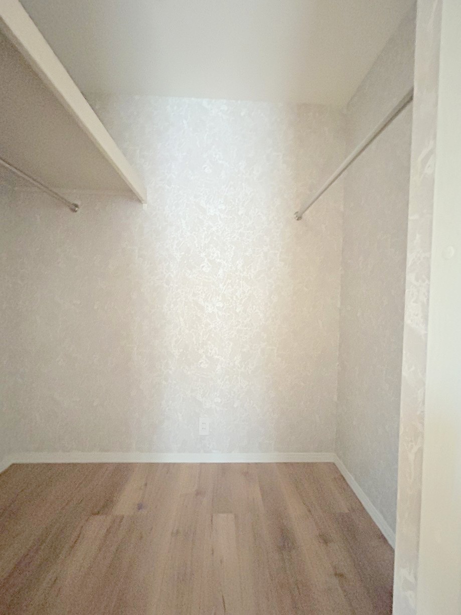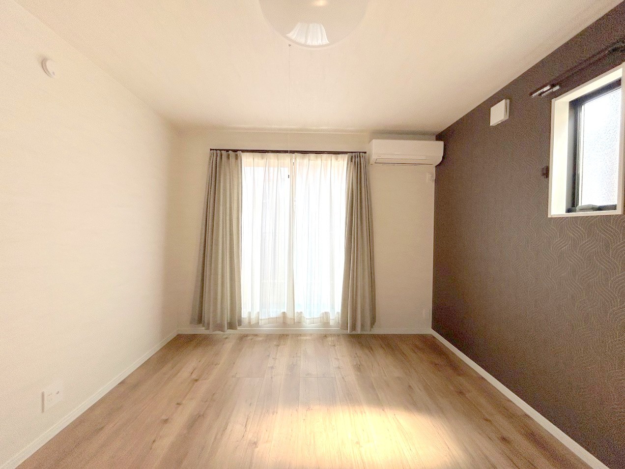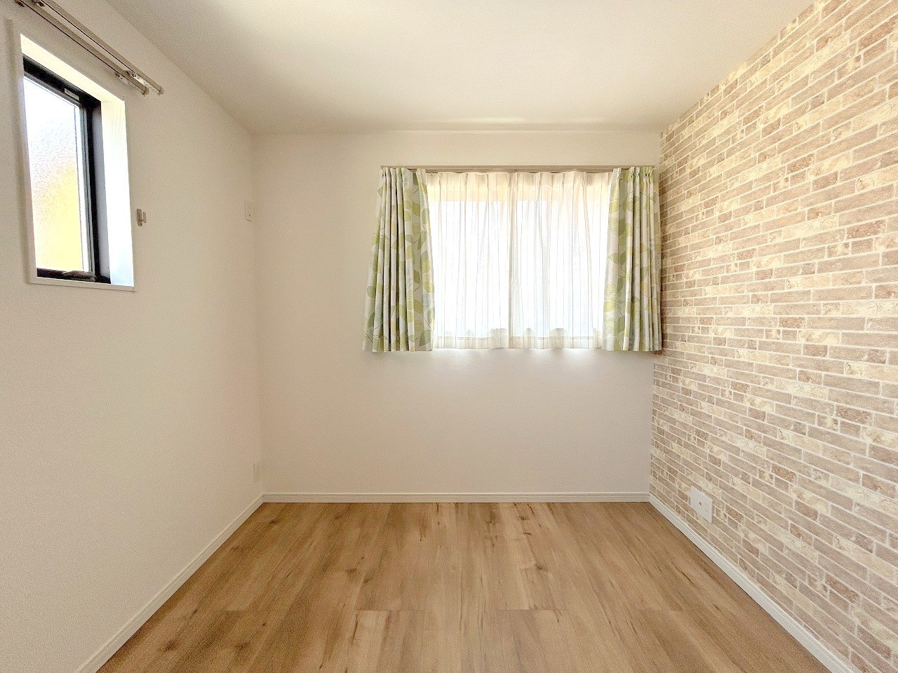 ベースカラーと異なった配色の壁紙を使用。ちょっとお部屋の雰囲気が変わります。
