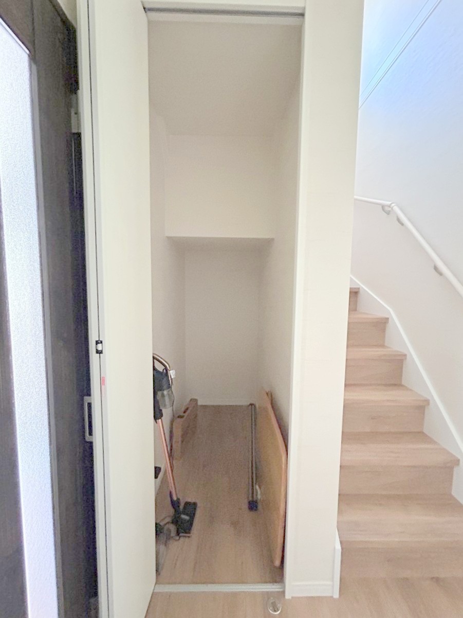 階段の下の空間も無駄にしない一工夫、ここにも小さな収納があります。