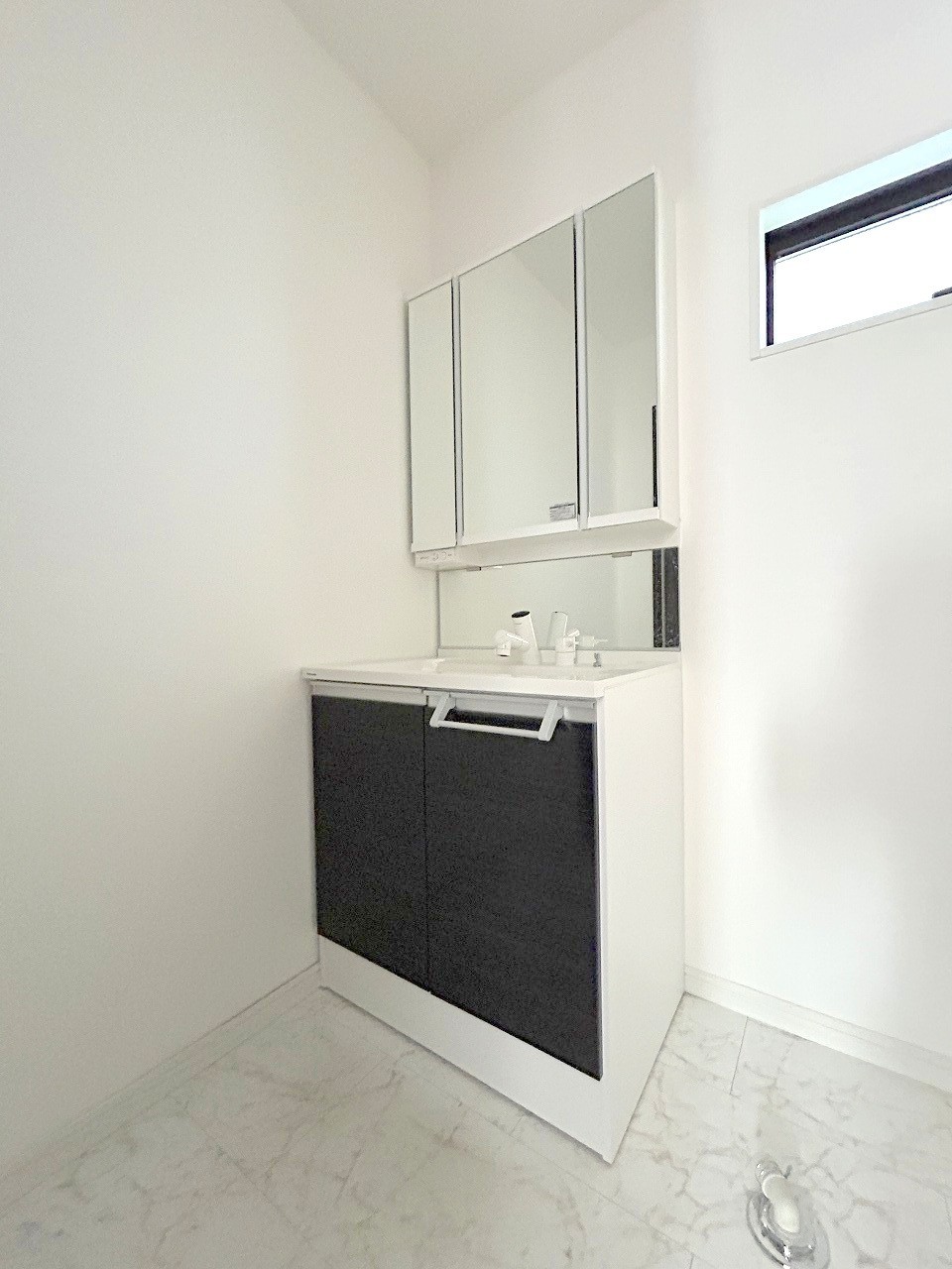 たっぷりの収納を設けたシャワー付洗面台で快適な暮らし。