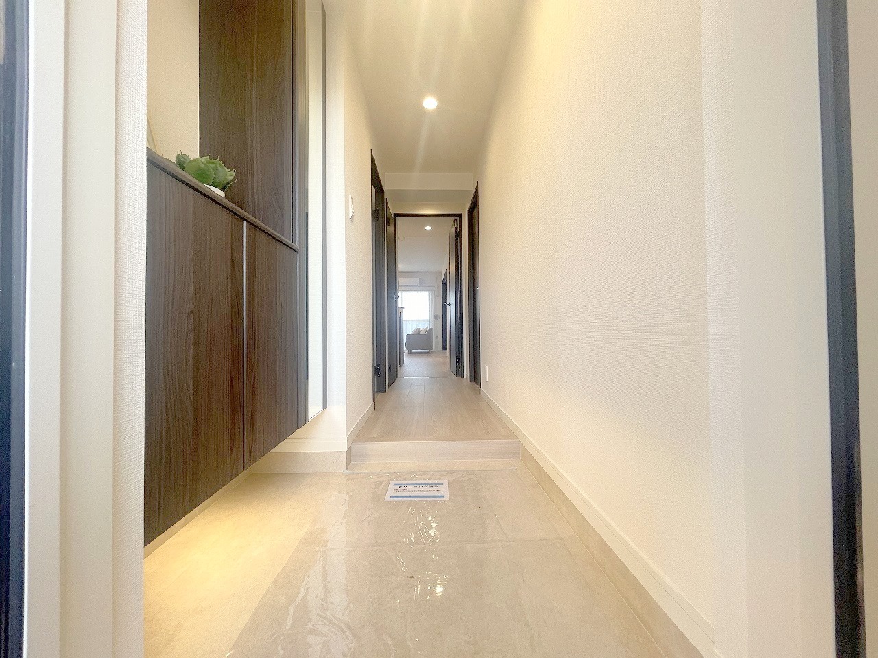タイル張りのエントランスが迎える永住邸、全94戸。