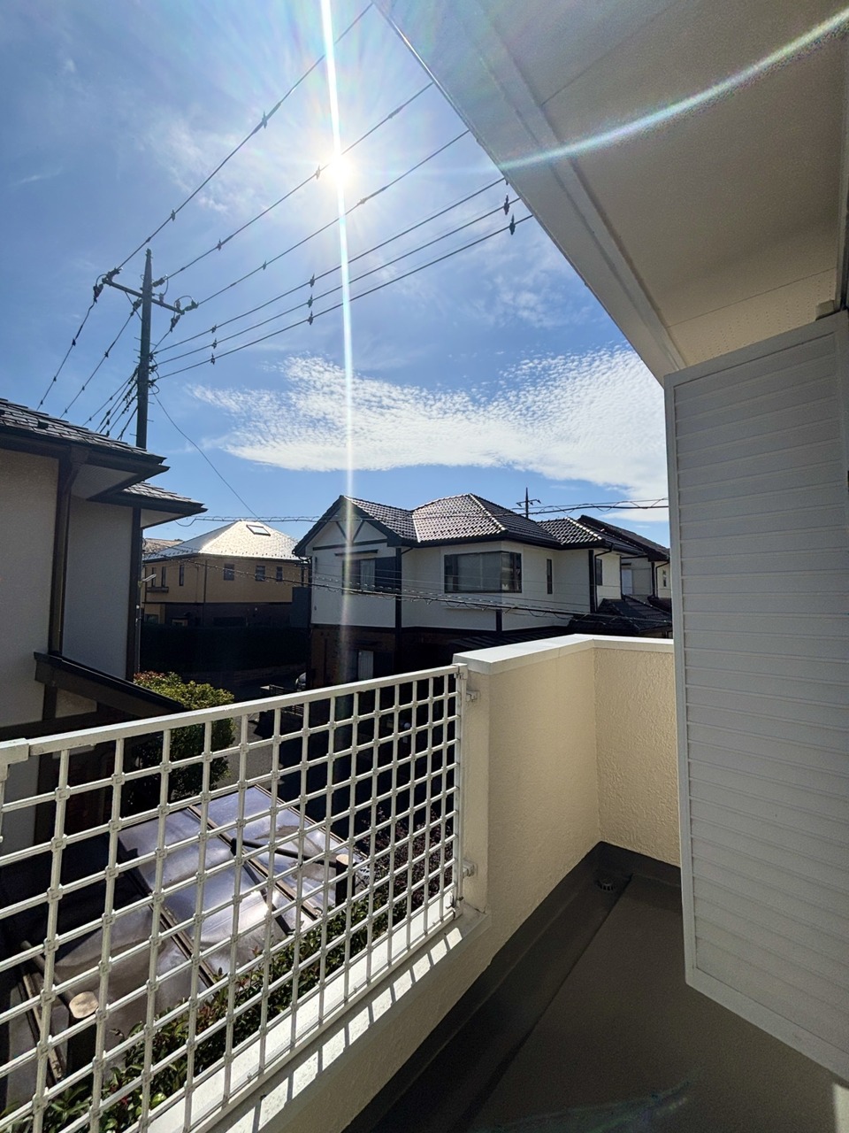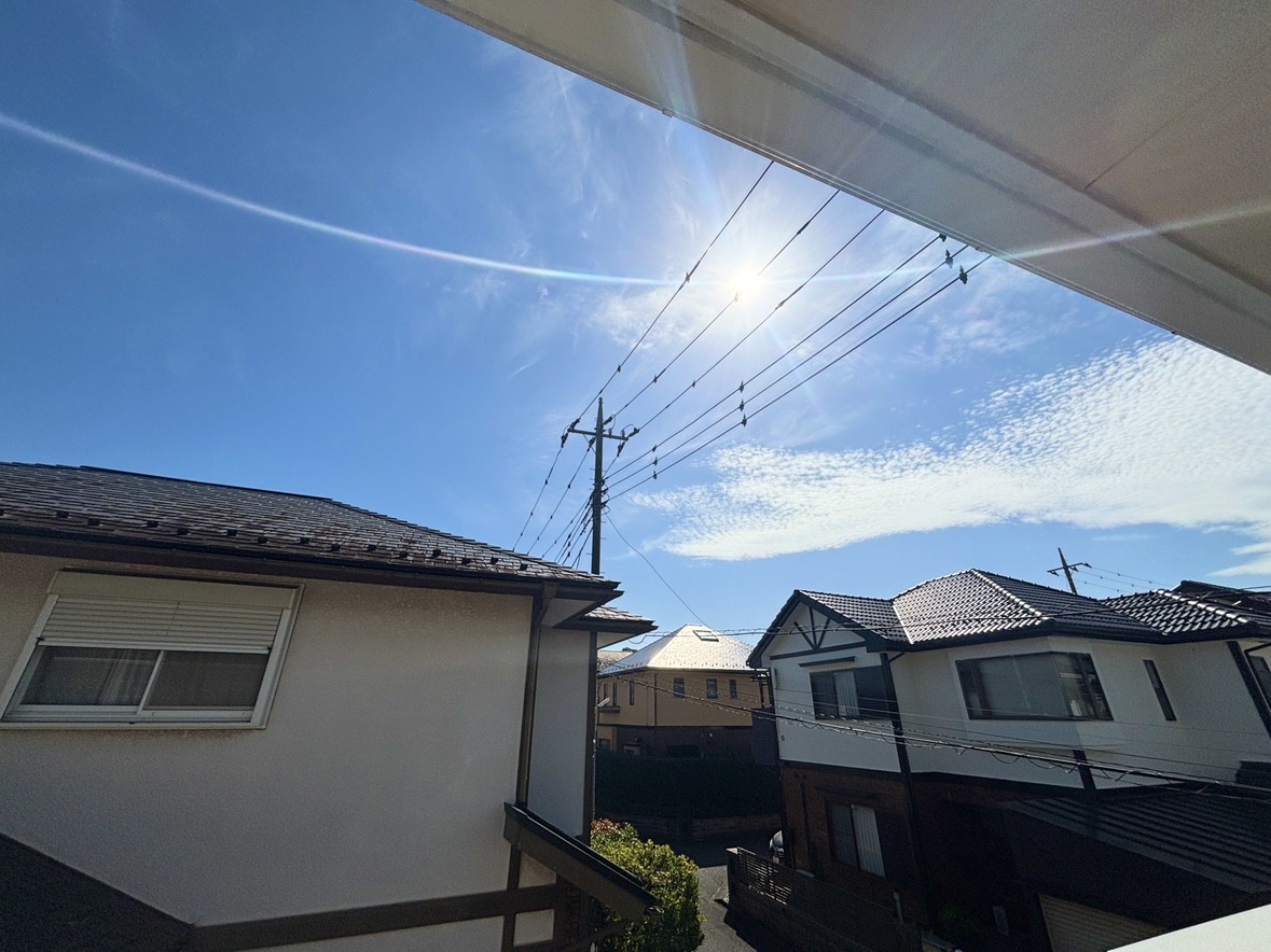 陽ざしが差込む明るいバルコニー。奥行きのあるバルコニーはお洗濯時に助かります。