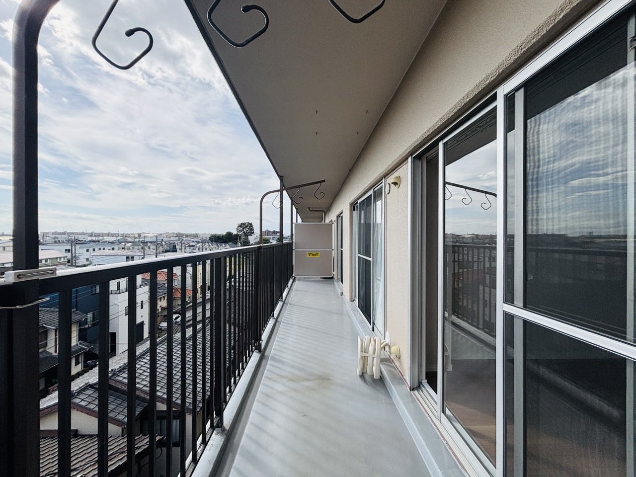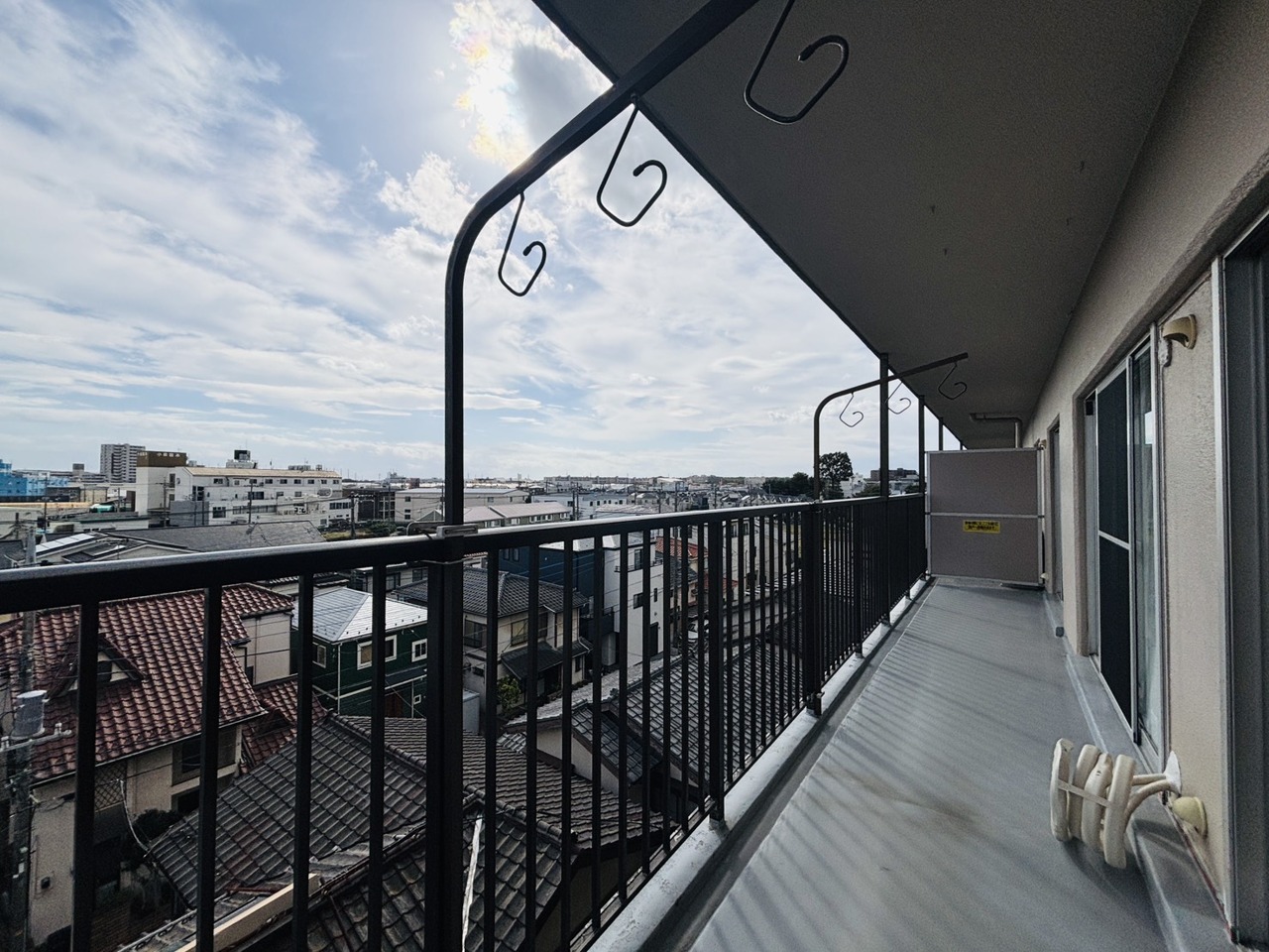 陽ざしが差込む明るいバルコニー。奥行きのあるバルコニーはお洗濯時に助かります。