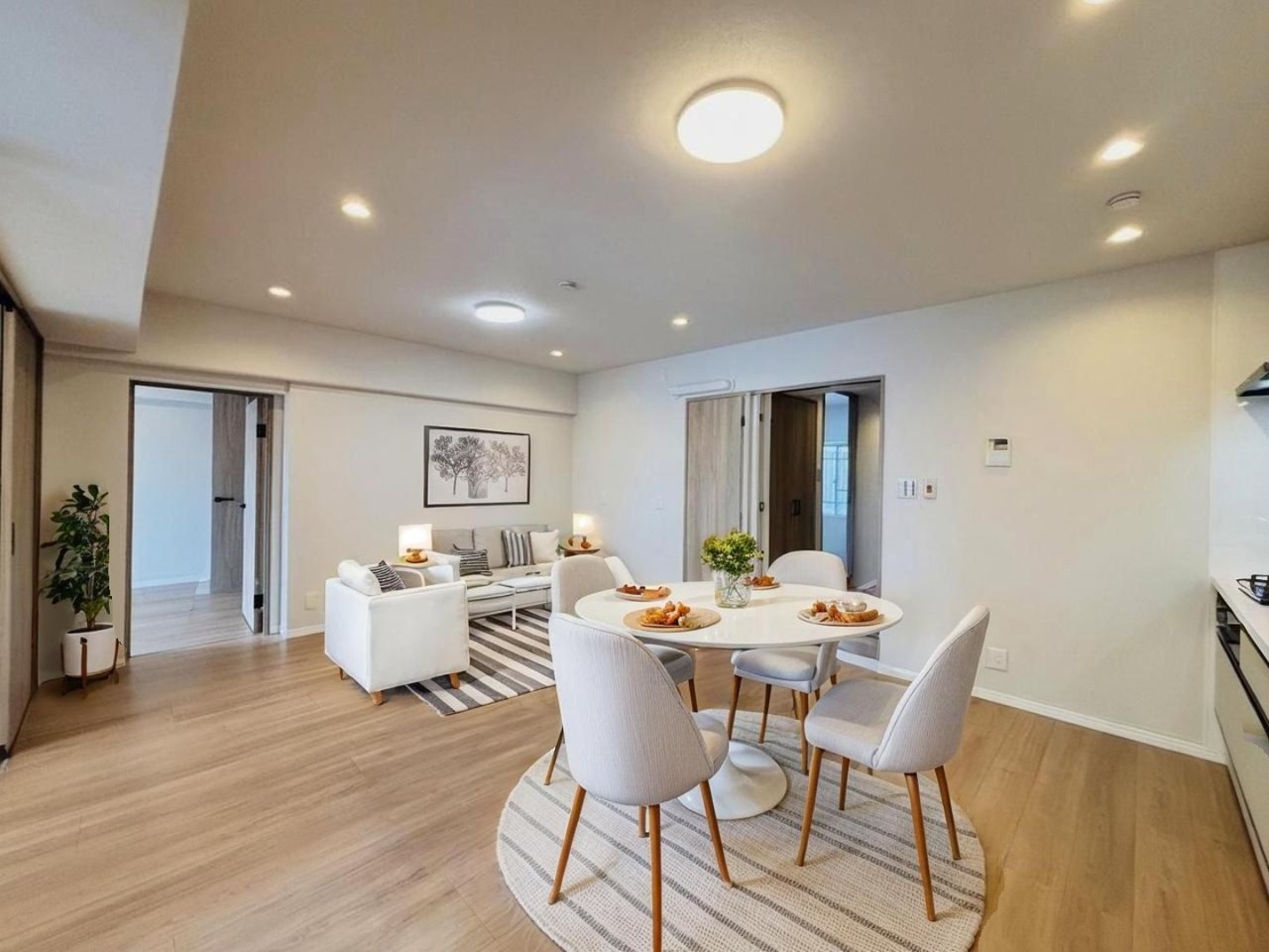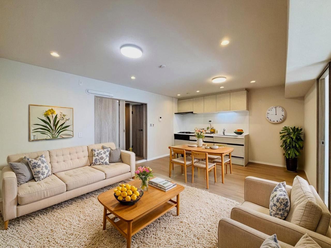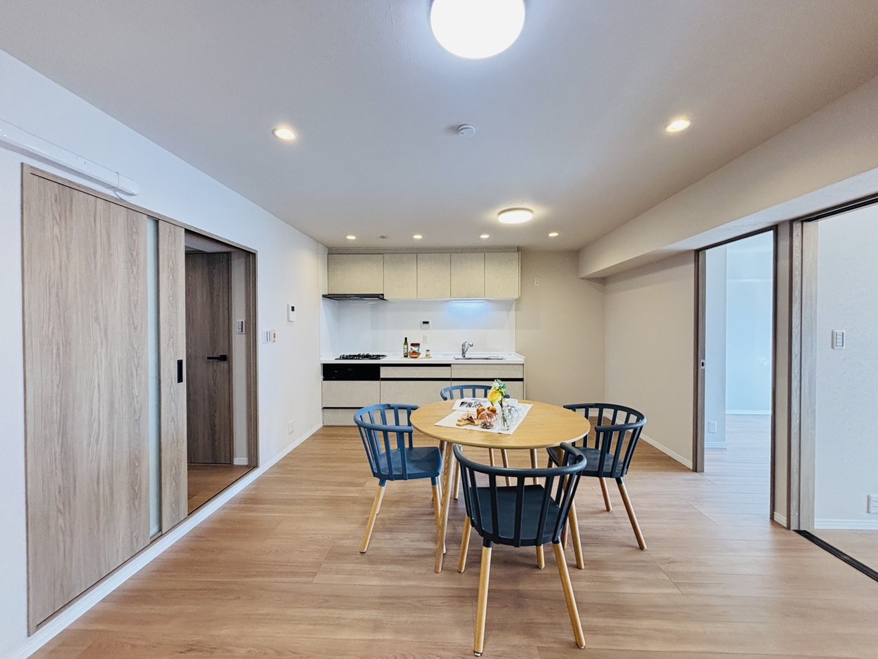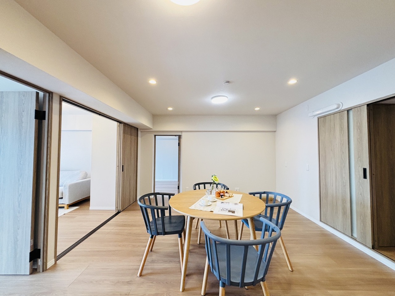 どんな家具にでも相性が良い清潔感ある白色調のクロスを採用。主張しすぎない配色、耐久性にも優れた床材は日々のメンテナンスも楽に、快適に過ごして頂けるよう考えられています。