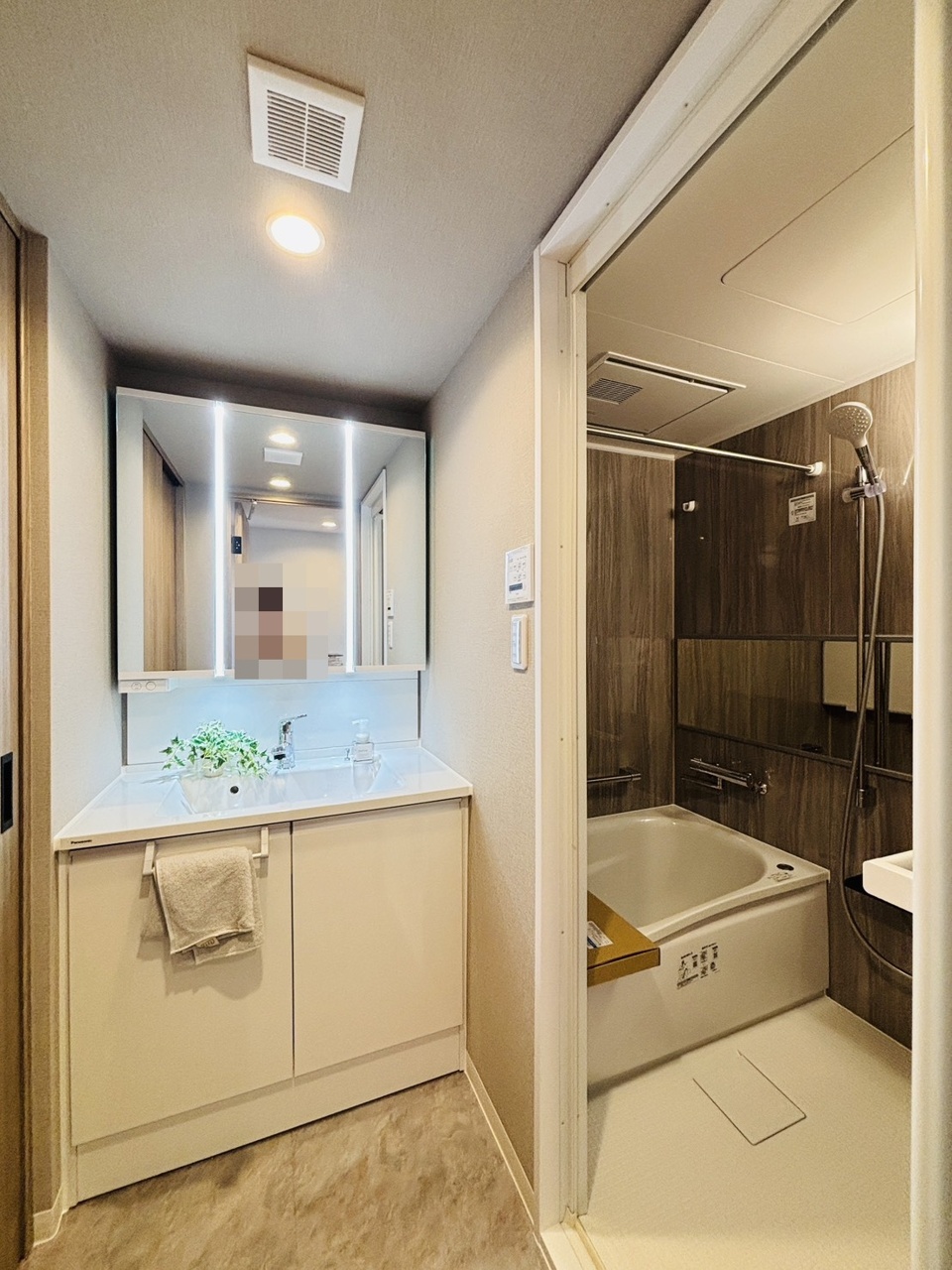 落ち着いた色味の浴室で1日の疲れをゆっくりと癒してください。