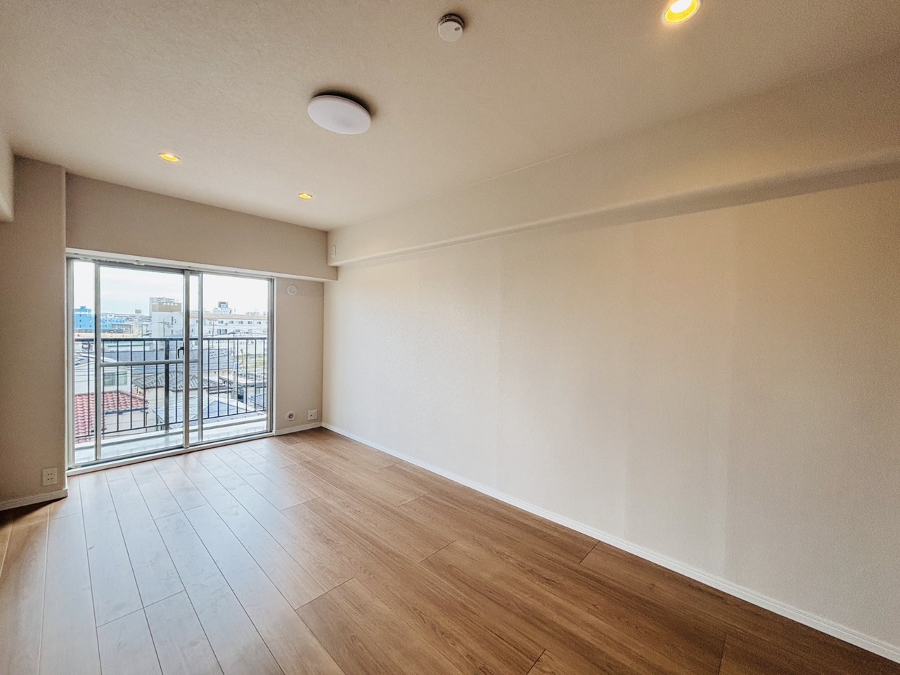 大きな開口部から明るい光が差し込む、日中の室内の明るさがこの部屋の魅力です。