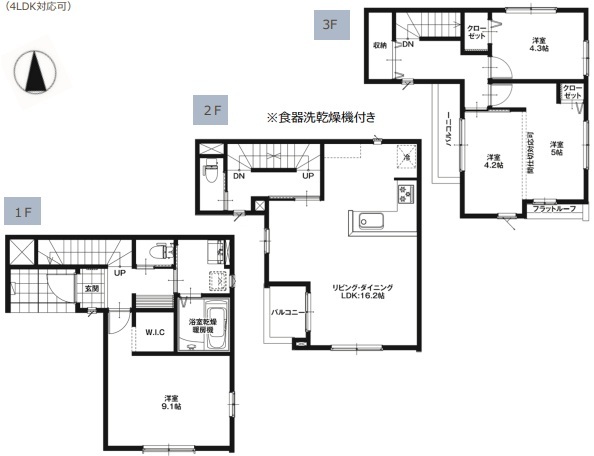 | 間取 | 3LDK (LDK16.2帖、洋室9.2帖、洋室9.1帖、洋室4.3帖) | ||