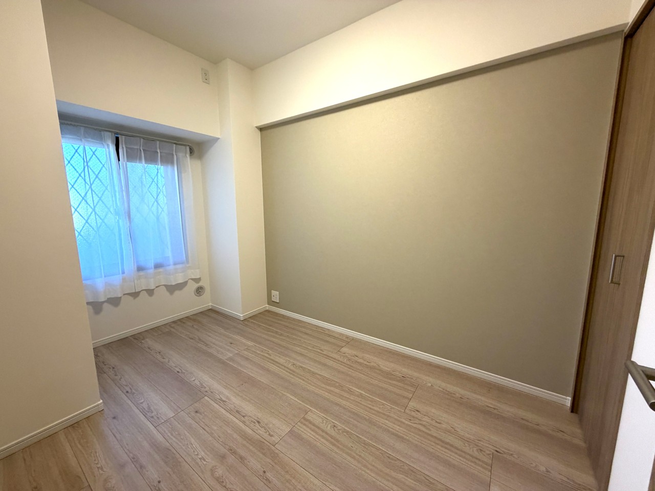 ベースカラーと異なった配色の壁紙を使用。ちょっとお部屋の雰囲気が変わります。