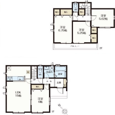 | 間取 | 4LDK (LDK15帖、洋室6.75帖、洋室6帖、洋室5.62帖、洋室5.25帖) | ||