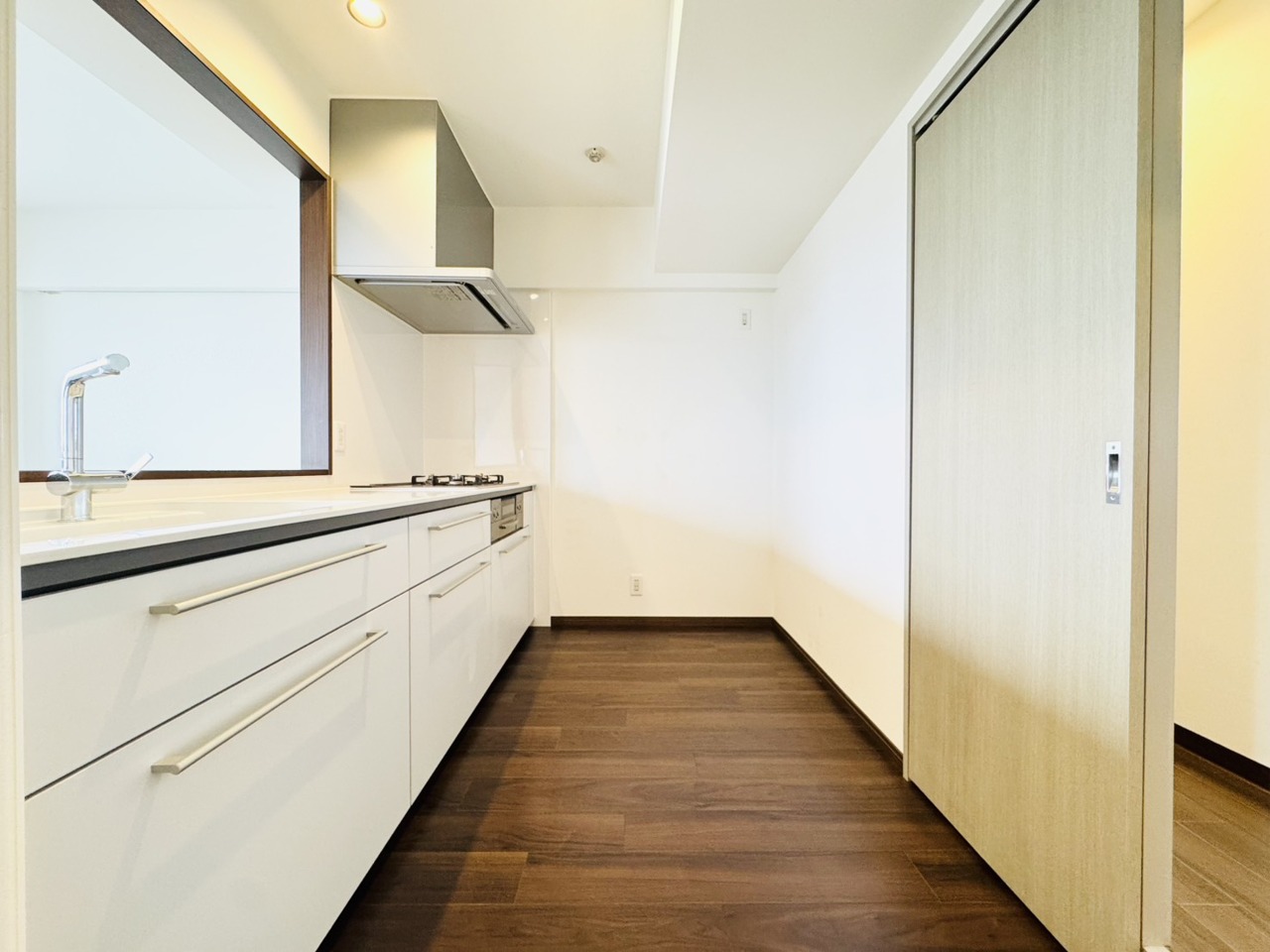 キッチン裏の空間もしっかり確保。カップボードも大きなものを置けそうです。