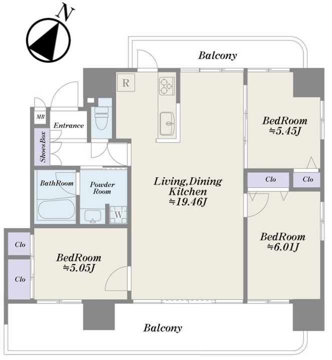 | 間取 | 3LDK (LDK19.46帖、洋室6.01帖、洋室5.45帖、洋室5.05帖) | ||