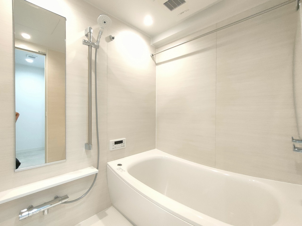 広々1坪タイプのゆったり浴室ユニット。防カビ・抗菌素材なのもうれしい。