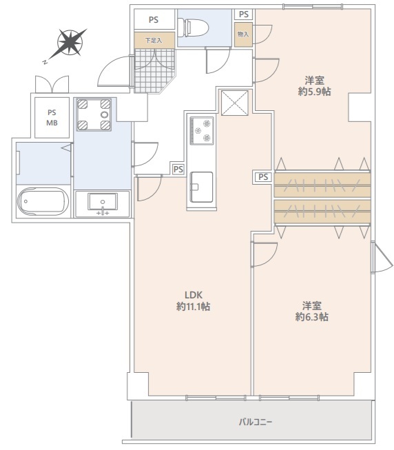 | バルコニー面積 | 5.5m² 北西向き | ||