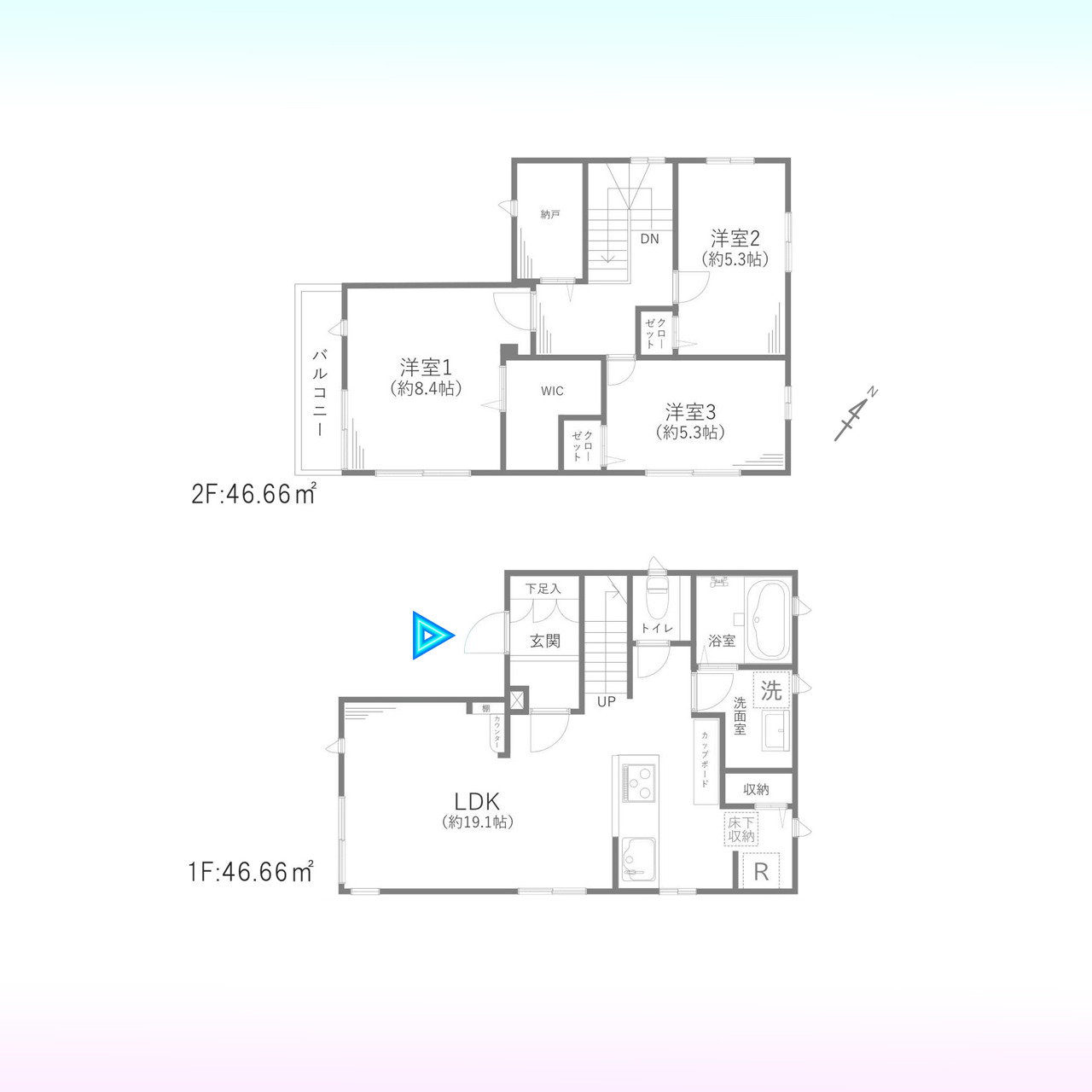 | 間取 | 3LDK (LDK19.1帖、洋室8.4帖、洋室5.3帖、洋室5.3帖) | ||