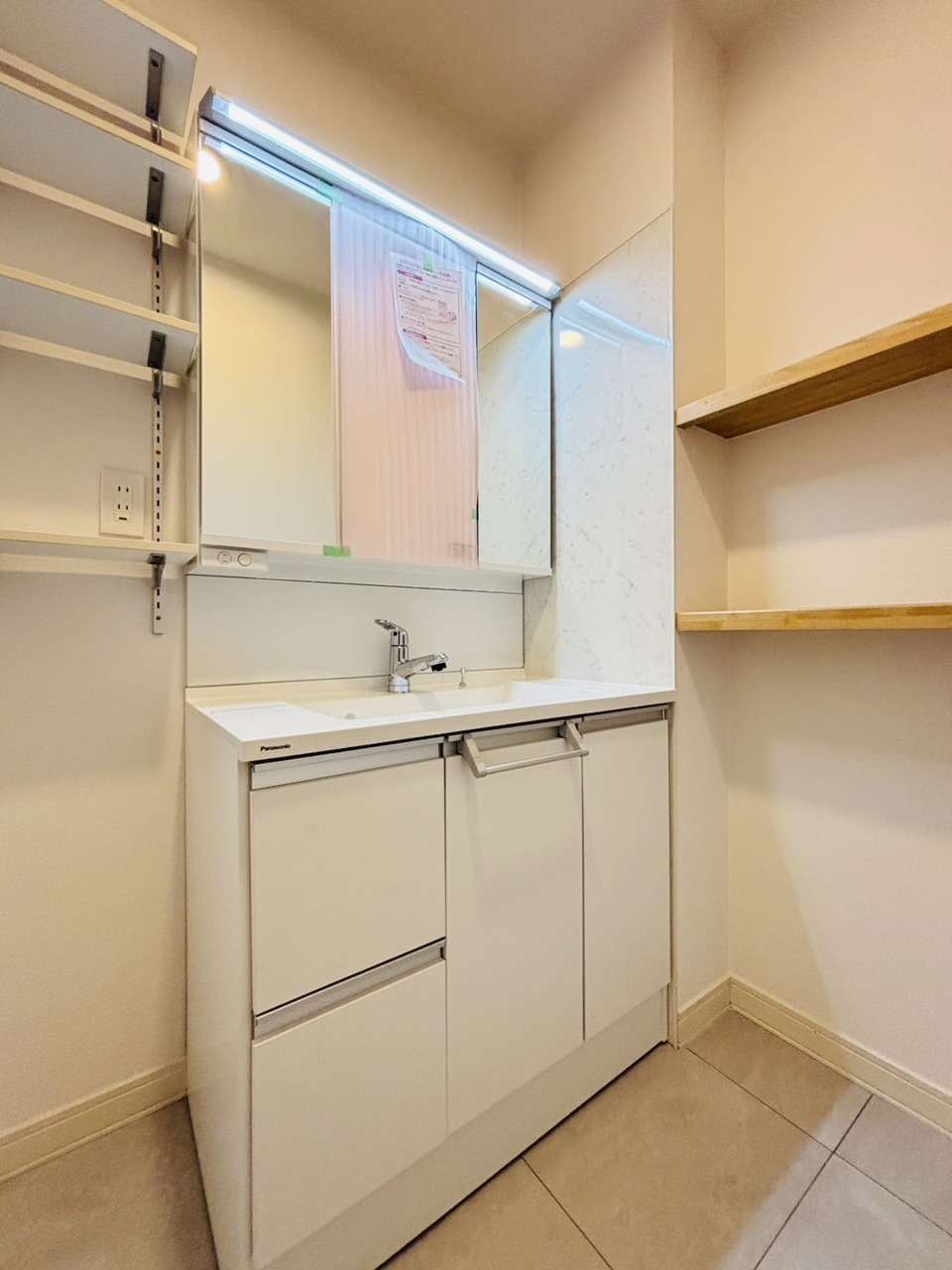 収納力と機能性に優れた、お手入れラクラク洗面化粧台。