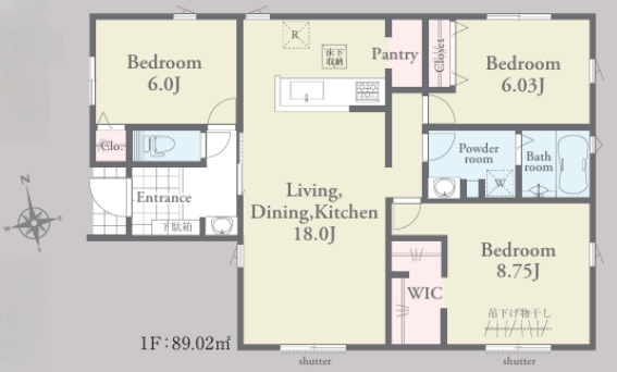 | 間取 | 3LDK+WIC (LDK18.0帖、洋室8.75帖、洋室6.03帖、洋室6.0帖) | ||