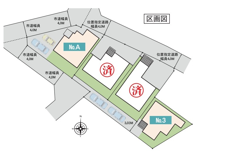 | 接道 | 北西側4M公道に接道 南西側4M公道に接道 北側4M私道に接道 |