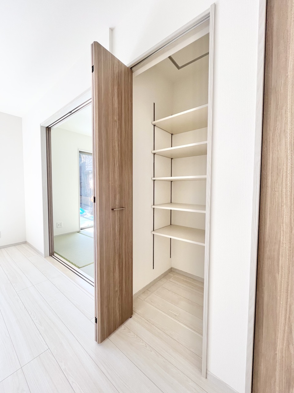 洗練された木目調の扉が、空間に落ち着きと広がりをもたらします。