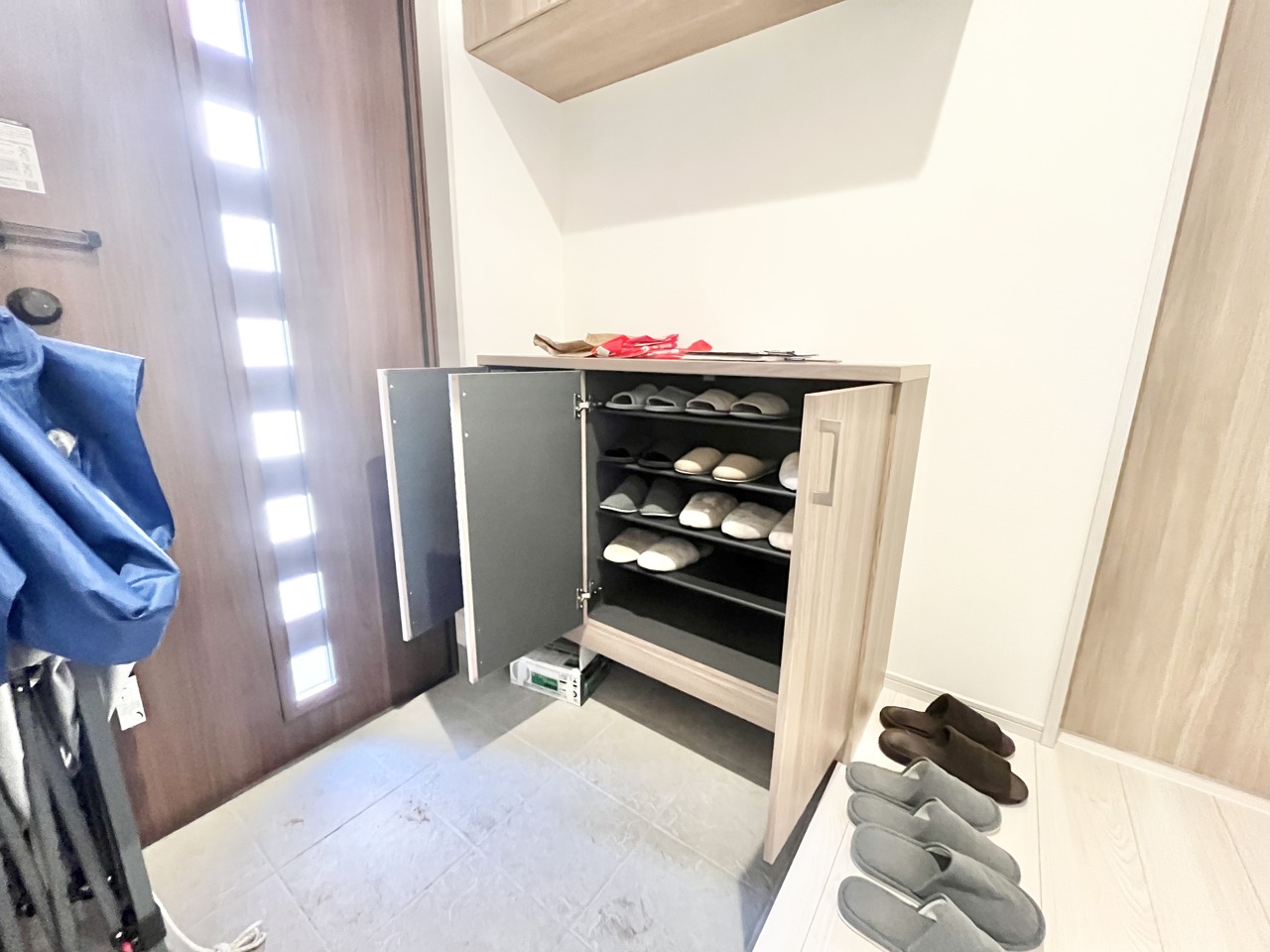 玄関に整然と並べられた靴、訪れる人を優しく迎える空間