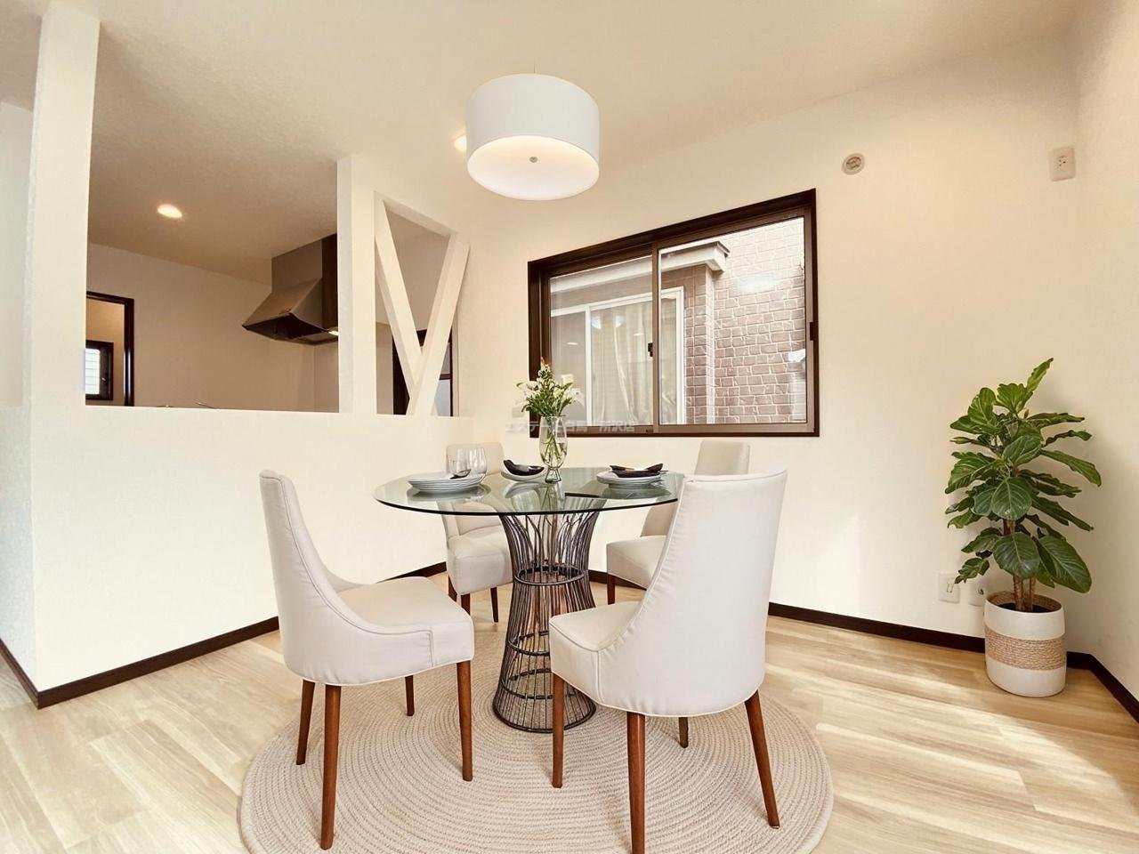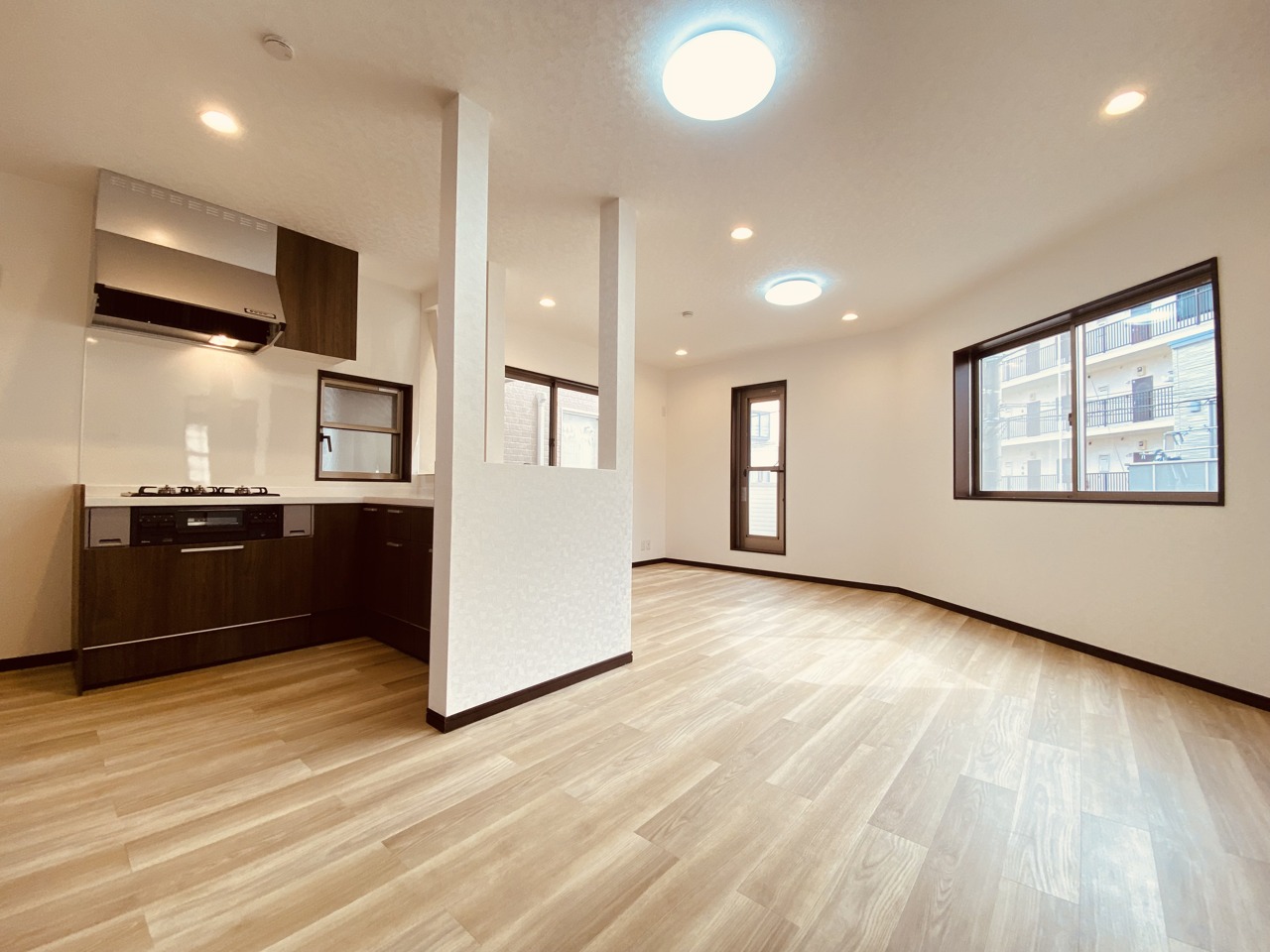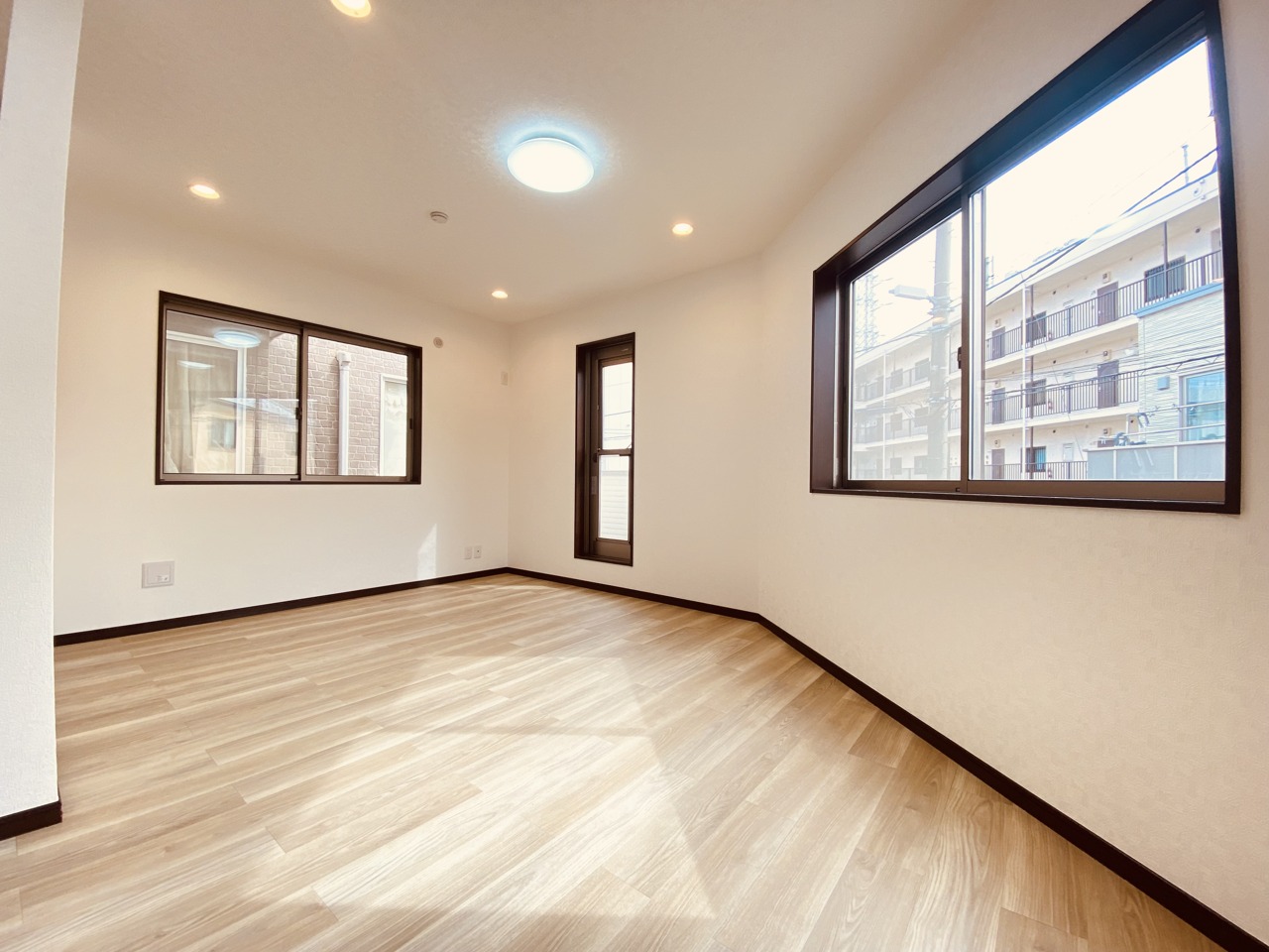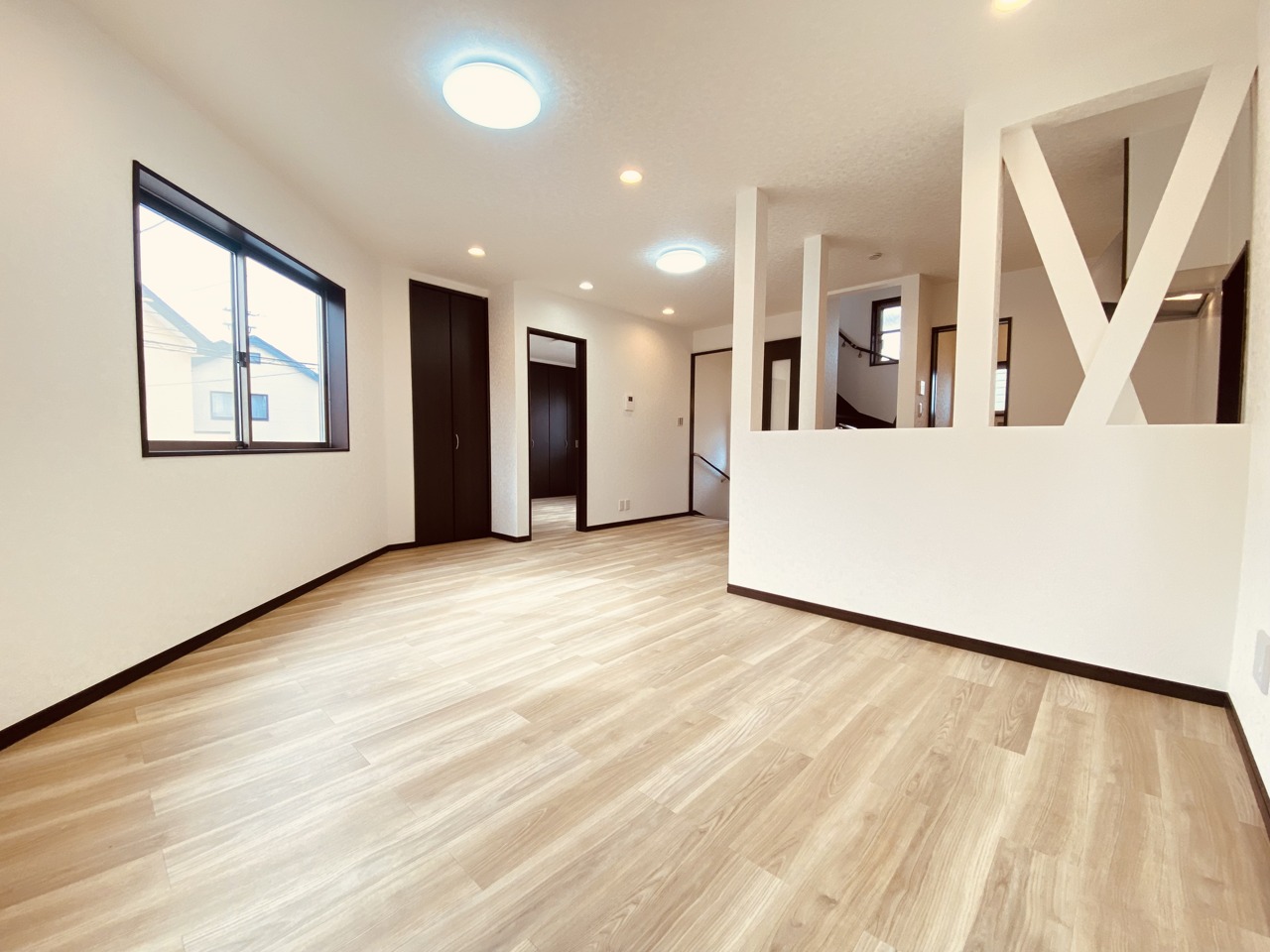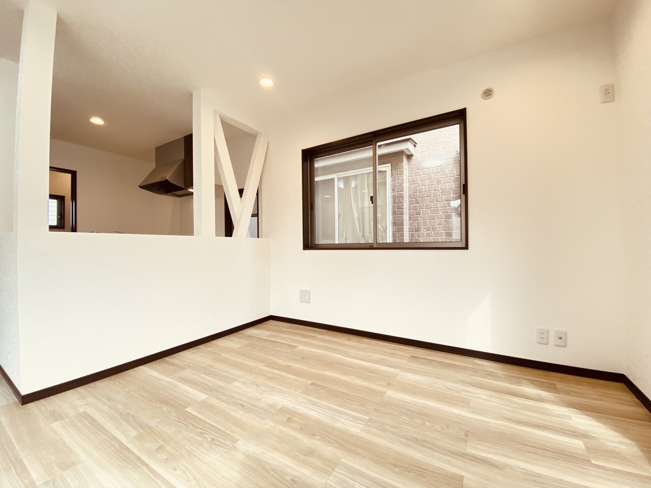 大きな開口部から明るい光が差し込む、日中の室内の明るさがこの部屋の魅力です。