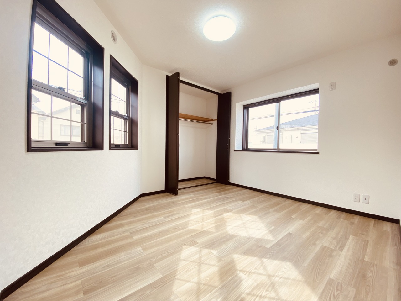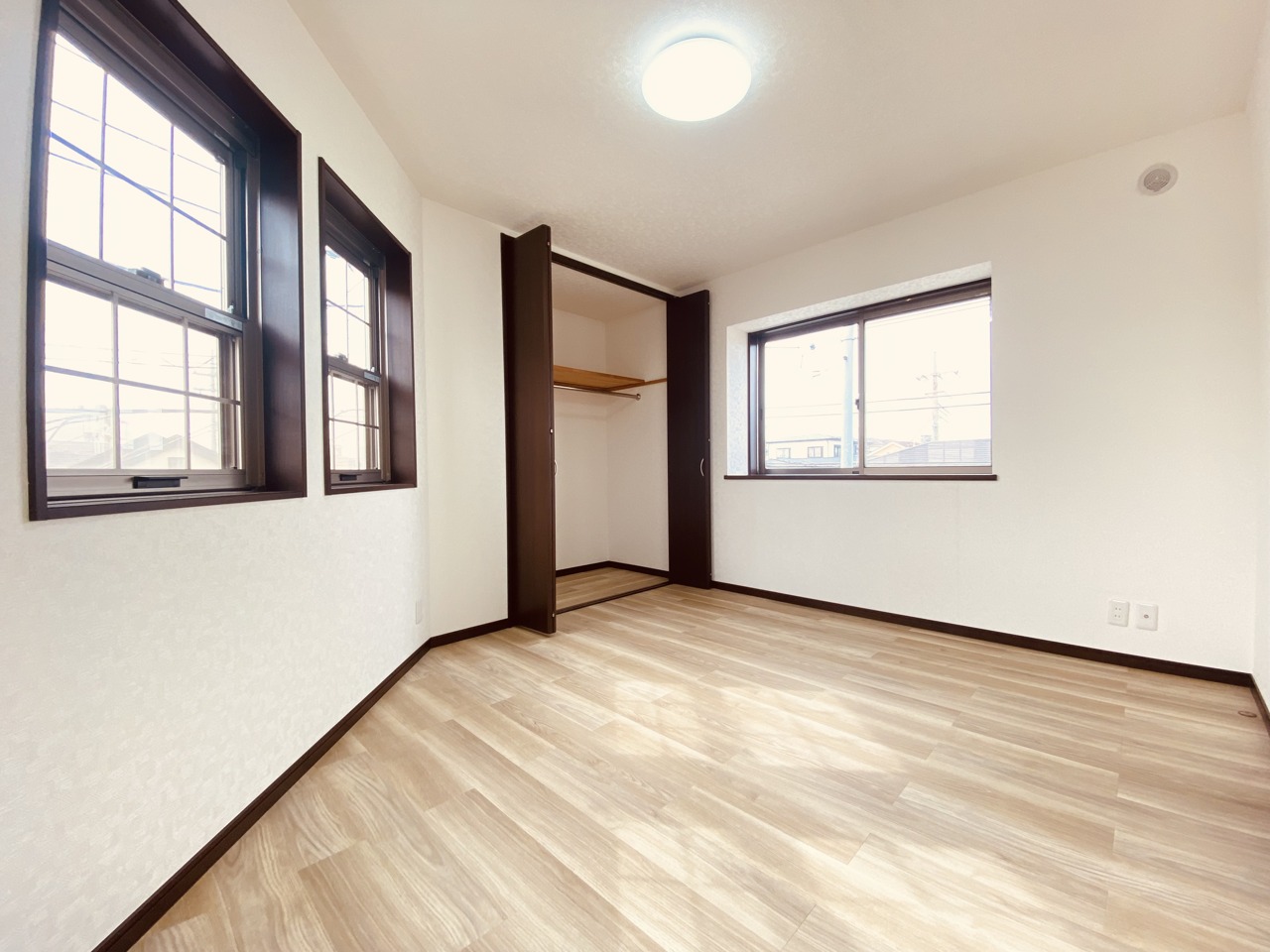 ゆとりのある寝室、陽光が入りやすく朝の目覚めも気持ち良く起こしてくれます。