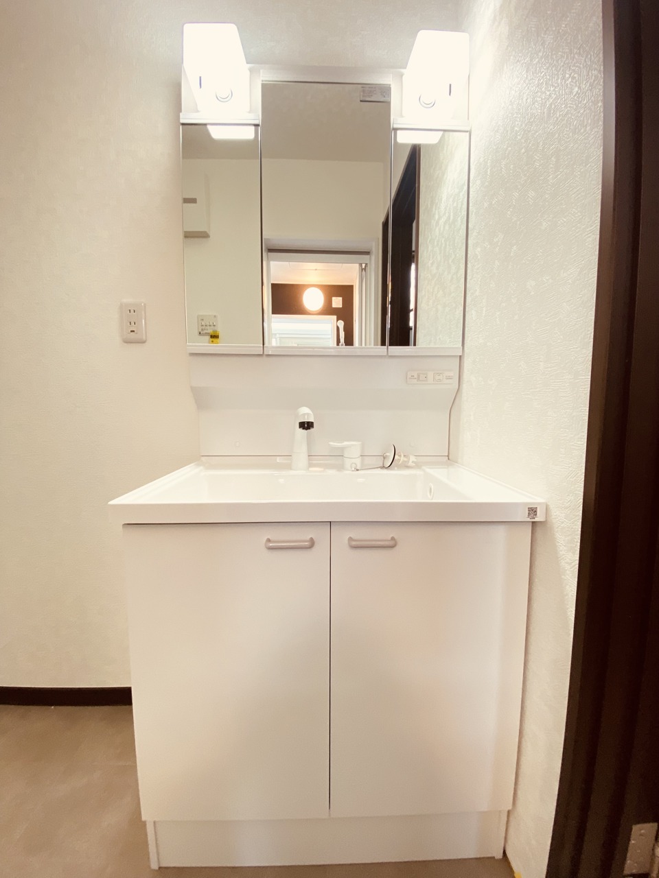 お出かけ前の身だしなみに一歩差がつく三面鏡。ミラー裏にはたっぷり収納もございます。