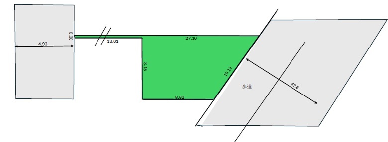 | 権利種類 | 所有権 | 接道 | 東側42.6M公道に接道 西側4.9M公道に接道 |