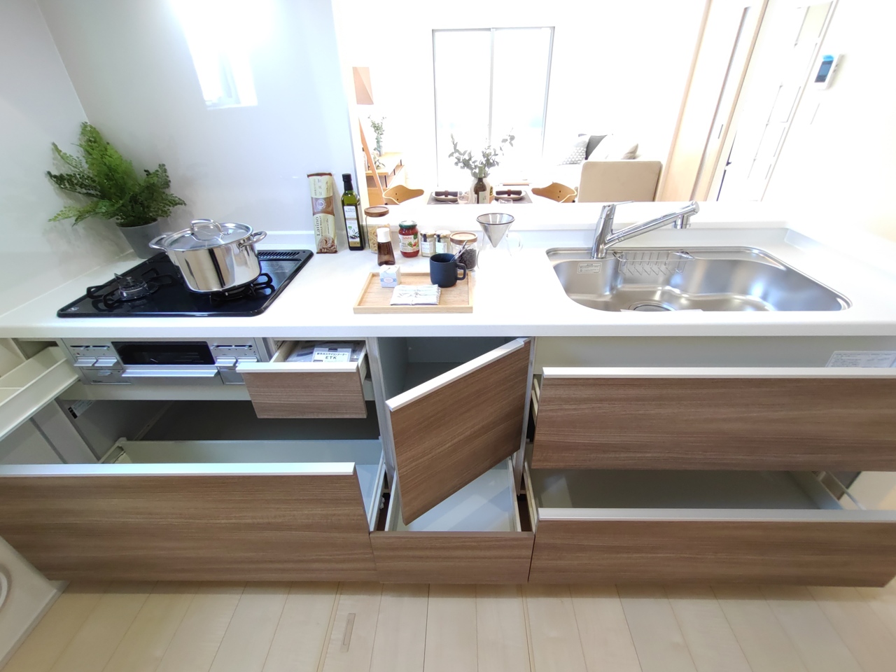 木の温もりと清潔感が調和する、心地よいキッチン空間。