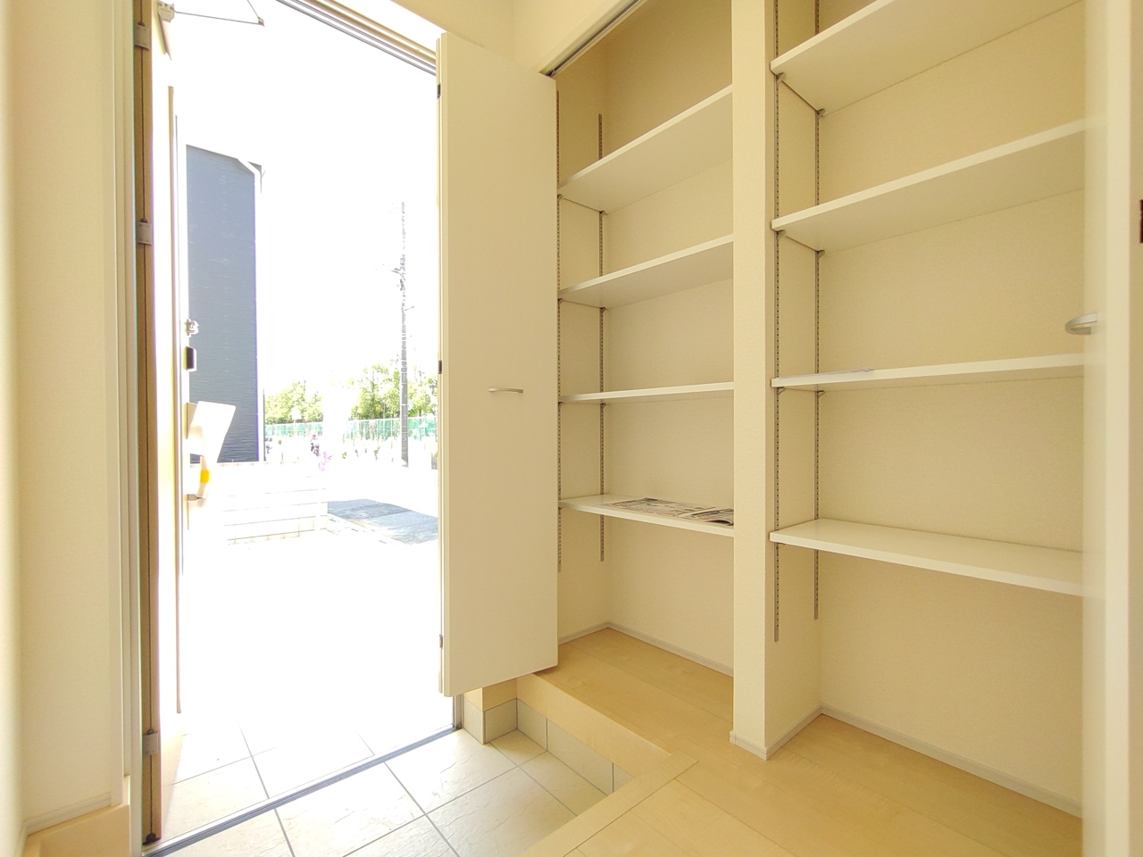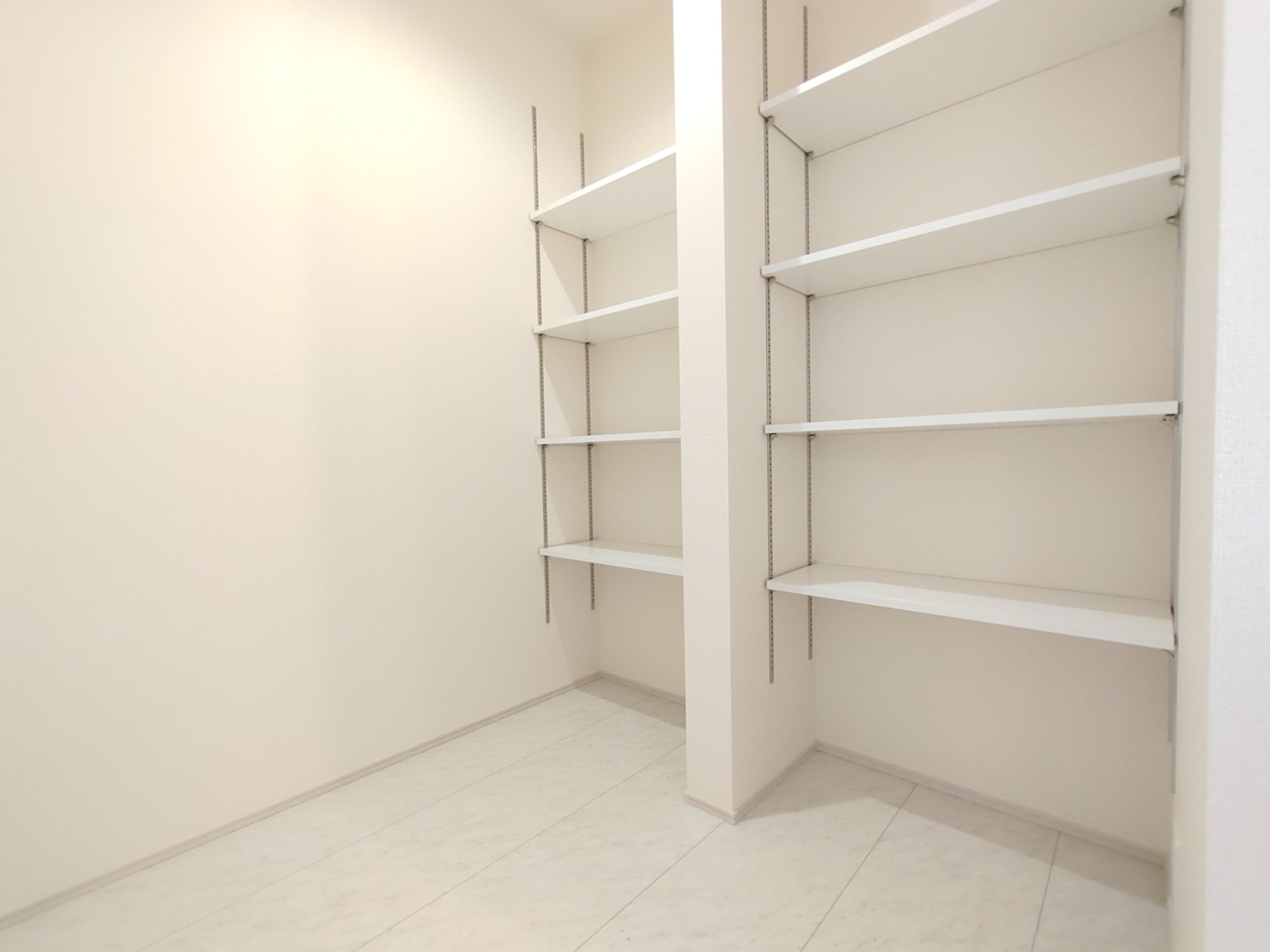 清潔感のある空間に、すっきりと並んだ棚が印象的です。