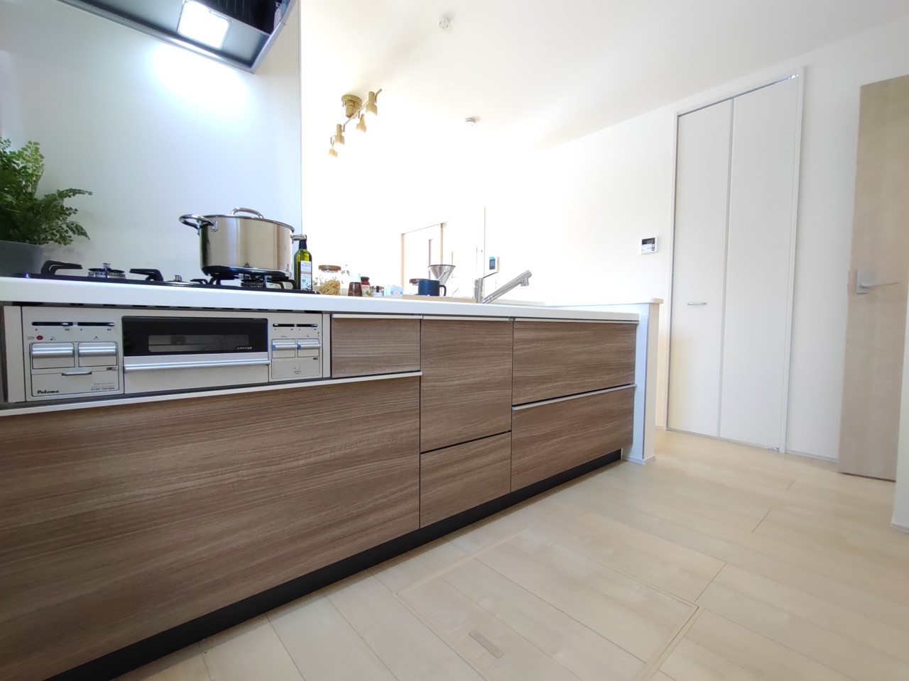温もりを感じる木目調と、清潔感のある空間が調和したキッチン
