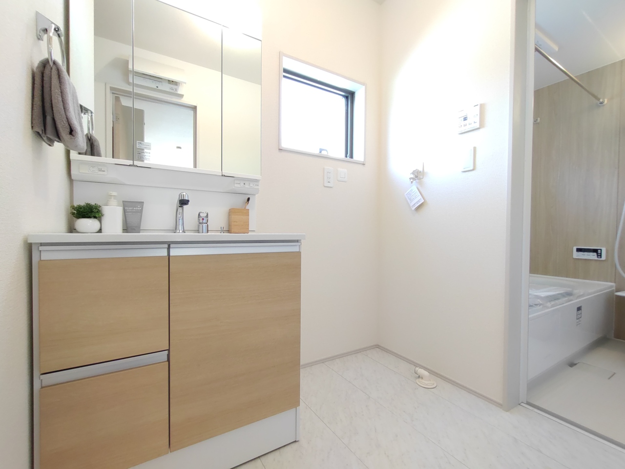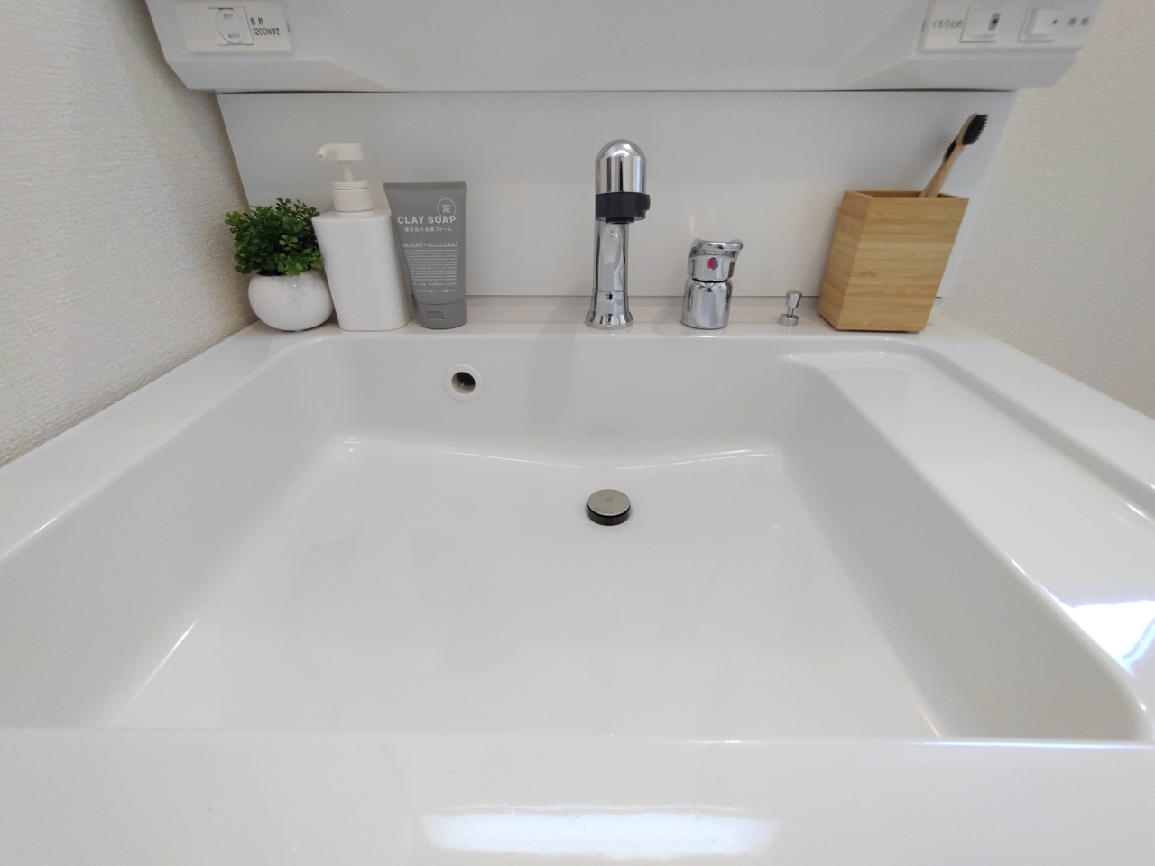 清潔感あふれる洗面空間は、心地よい一日のはじまりを予感させます。