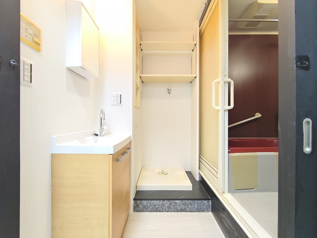 足元に設置された防水パンは、洗濯機運転中の振動・騒音を抑えてくれます。