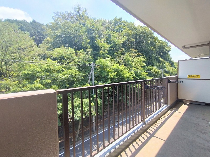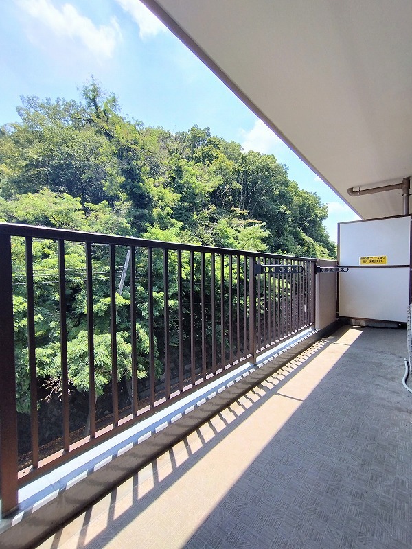 陽ざしが差込む明るいバルコニー。奥行きのあるバルコニーはお洗濯時に助かります。
