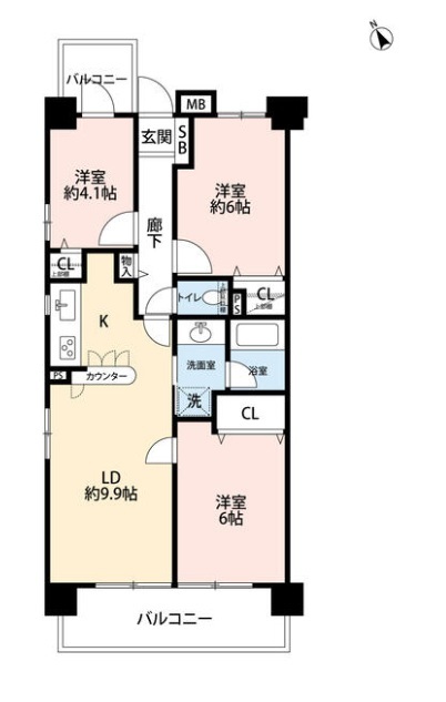 | 間取 | 3LDK (LD9.9帖、洋室6帖、洋室6帖、洋室4.1帖) | ||