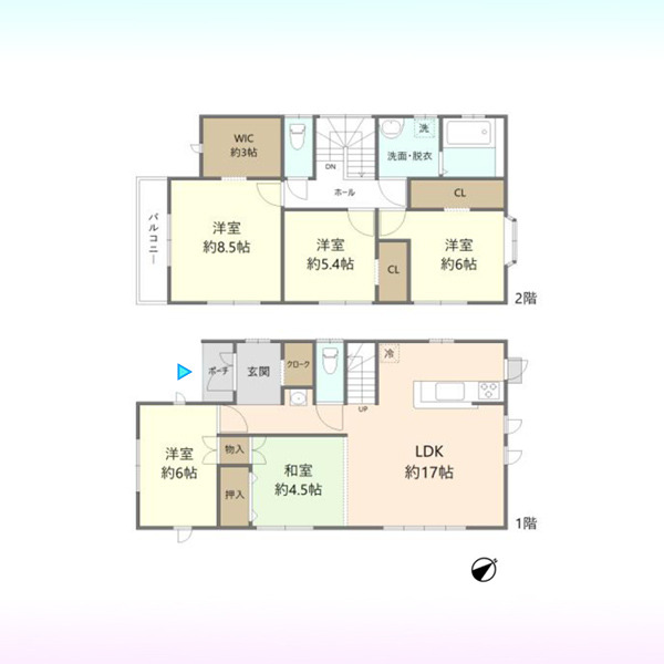 | 間取 | 5LDK (LDK17帖、洋室8.5帖、洋室6帖、洋室6帖、洋室5.4帖、和室4.5帖) | ||