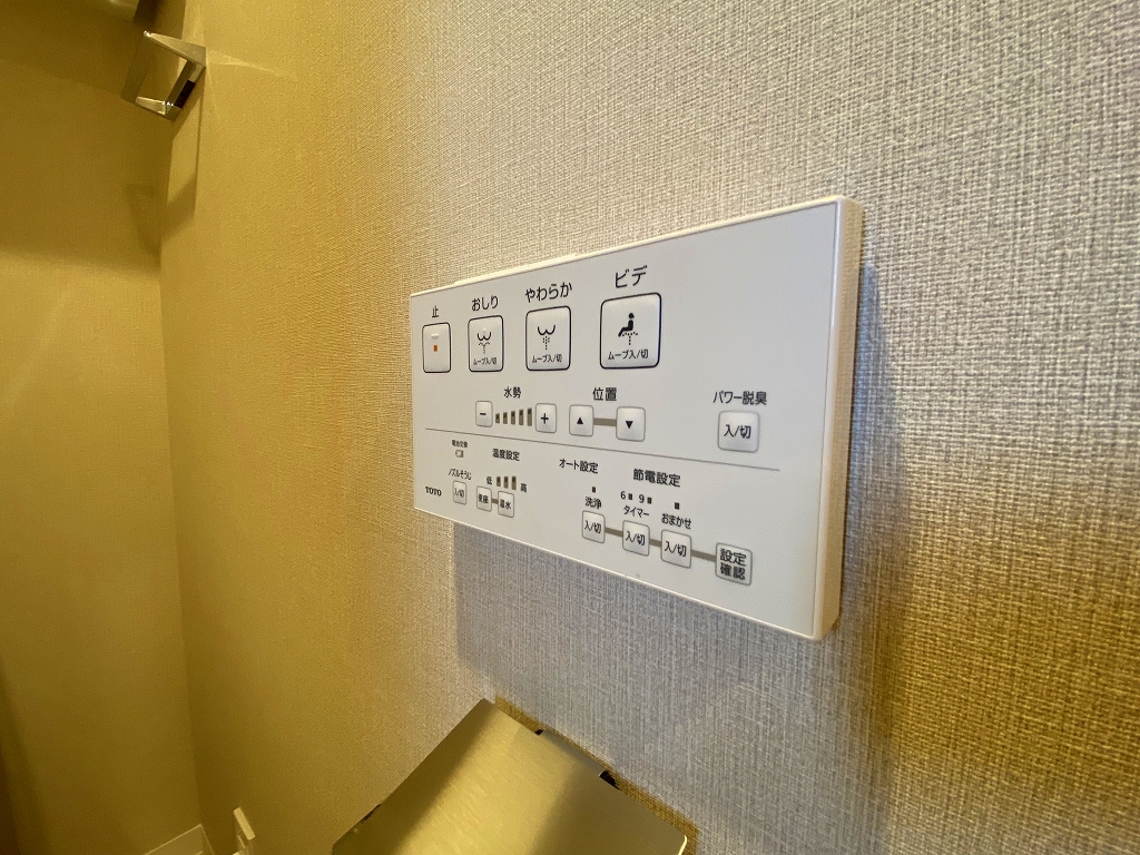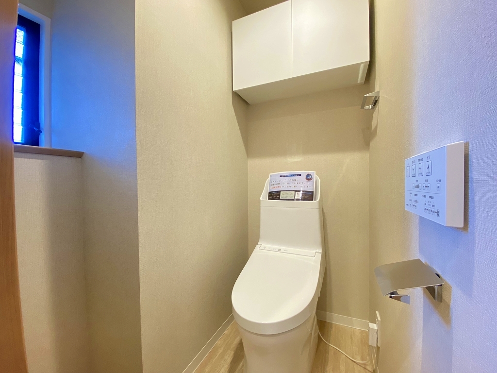 もちろんウォシュレット機能付き。憩いの場としてひそかに注目度の高いお手洗いにもご注目ください。