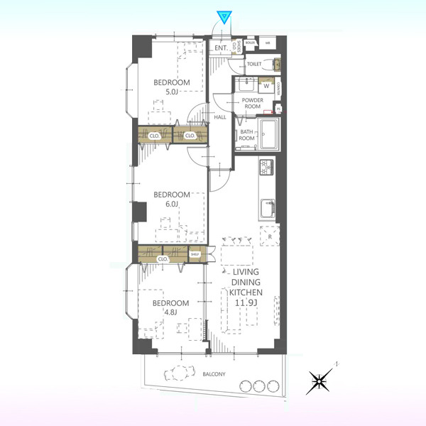 | 間取 | 3LDK (LDK11.9帖、洋室6帖、洋室5帖、洋室4.8帖) | ||
