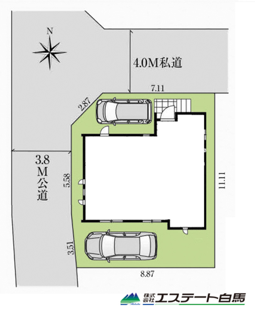 | 権利種類 | 所有権 | 接道 | 北側4M私道に接道 西側3.8M公道に接道 |